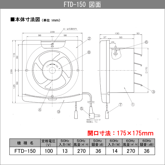 ■ 開口寸法:175 x 175mm