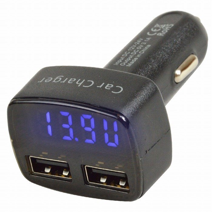 【送料380円】シガーソケット 温度計 電圧計 電流計 測定 12V 24V 対応 USB 充電 ポート デジタル バッテリーチェッカー シガー 2ポート