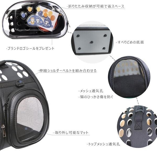 軽量で頑丈なEVA+PET素材。透明フィルムとメッシュでペットを確認しやすく、安心して使用できます。