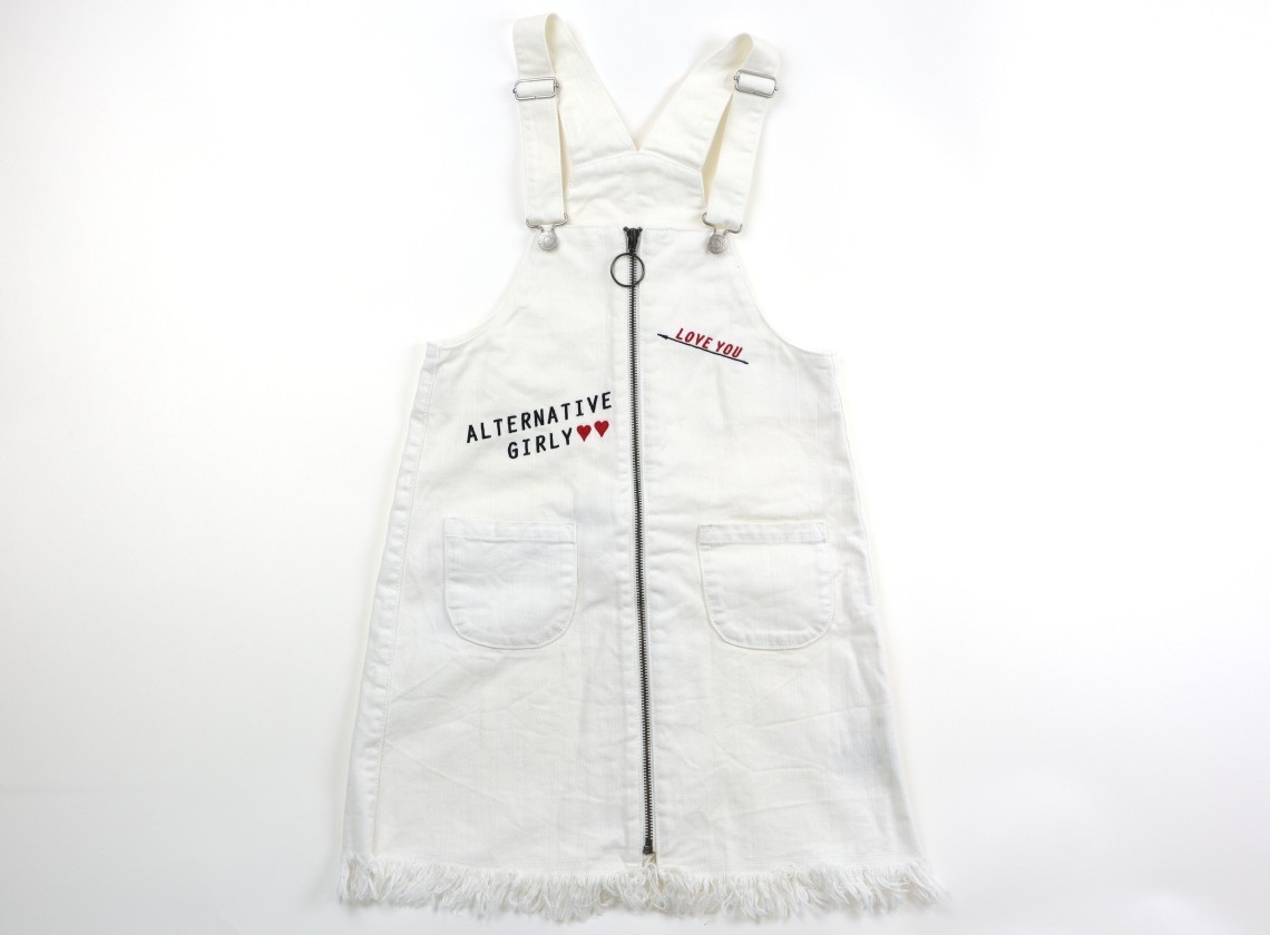 カラーデニム。ファスナーあり。全体的に使用感がありますが、特に目立つ汚れはなくまだお使い頂けそうです。