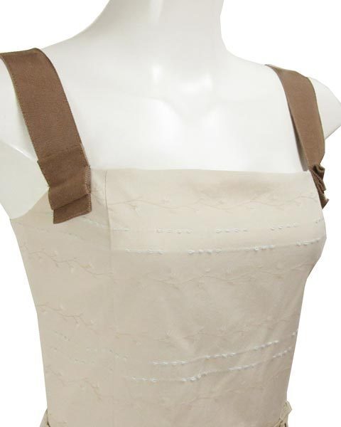 | コメント | フィットアンドフレアーのフォクシーらしい上品なワンピース。 上品なベージュに刺繍が入った高級感のあるデザイン。 カーディガンやボレロをプラスして、フォクシースタイルが 楽しめます。 裏地裾のフリルにも手が凝っていて、高級感があります。 |