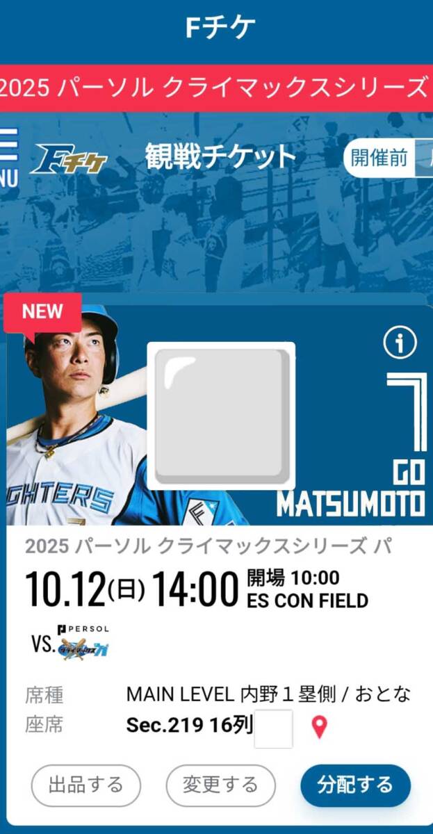 10月12日(日) CSクライマックス 日本ハム×オリックス 2階1塁側 内野席