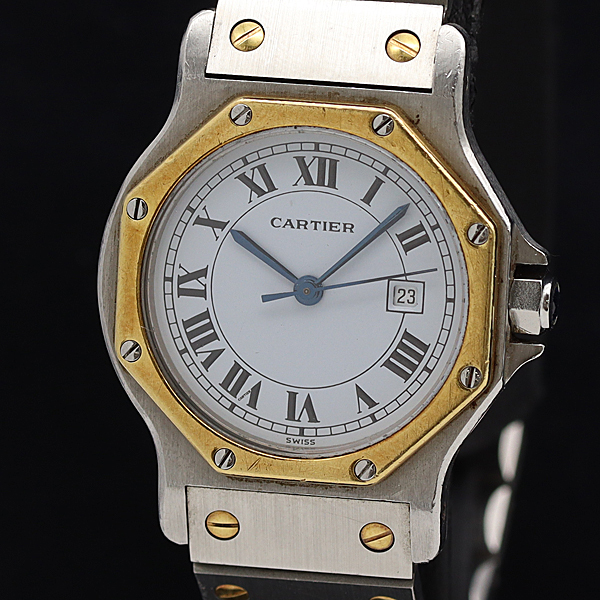 1円 稼働 カルティエ サントスオクタゴン 296652640 AT/自動巻 ホワイト文字盤 ボーイズ/メンズ腕時計 2000000 9NSM SMZ