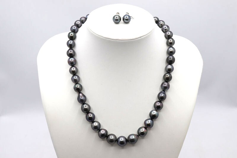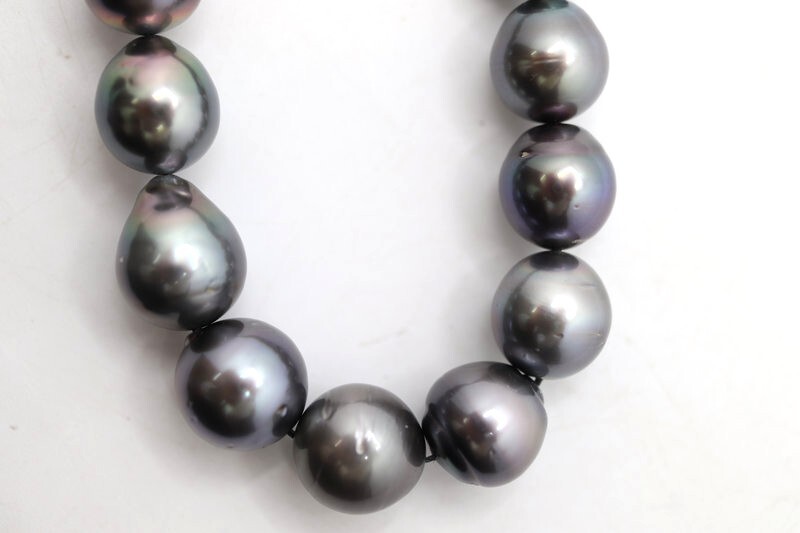 ブラックパール/真珠 SILVER/K14WG ネックレス&イヤリング シルバー 約9mm~約14mm 45.5㎝ 重量68g 照りあり