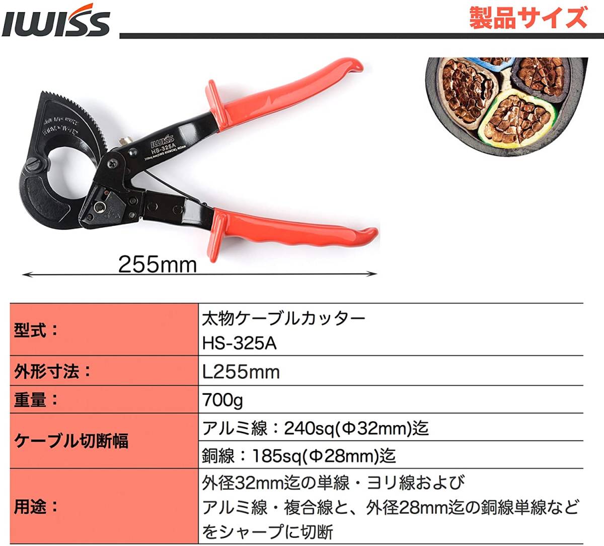 ★アイウィス(IWISS)★ラチェット 太物 ケーブルカッター 電線サイズ240sqまで HS-325A★ | |||