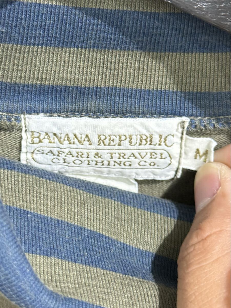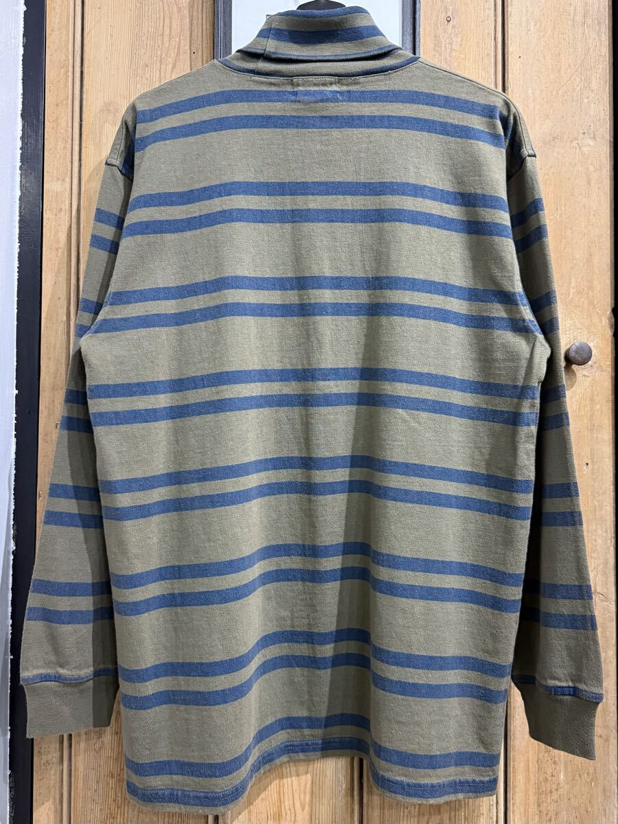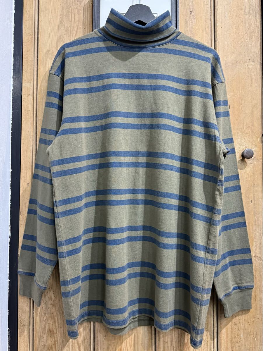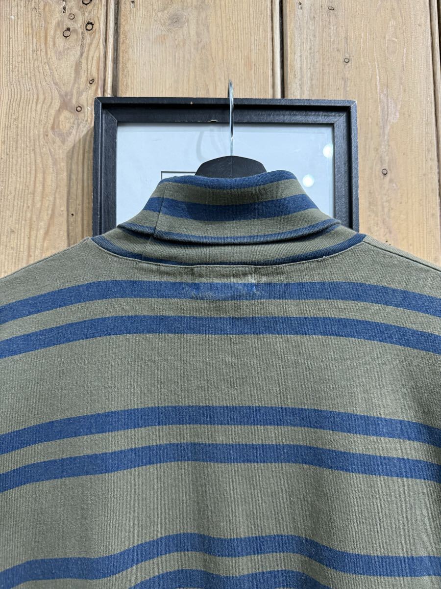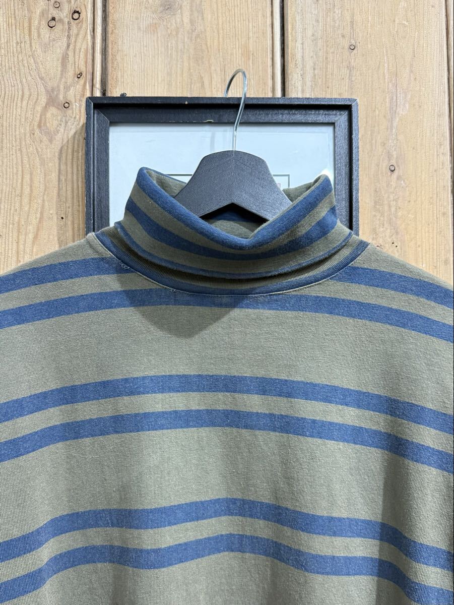 80s 90s BANANA REPUBLIC ハイネック ボーダー ロング Tシャツ M オリーブ ネイビー ロンT バナナリパブリック バナリパ