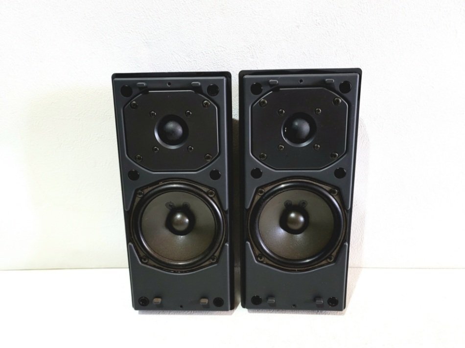 商品説明 低域には12cmコーン型ウーファーを、高域には3cmのオムニドーム型トゥイーターを採用しています。 レトロ感のあるもので、部品取りやコレクションにもおすすめです。 詳細 ●サイズ:奥行7.5cm、幅13cm、高さ30cm ●付属品:スタンド2点、金具6点、ネジ ●動 作:動作確認済み ●ランク:ヴィンテージランク ●コンディション:裏側や側面に傷、汚れがあります。 |