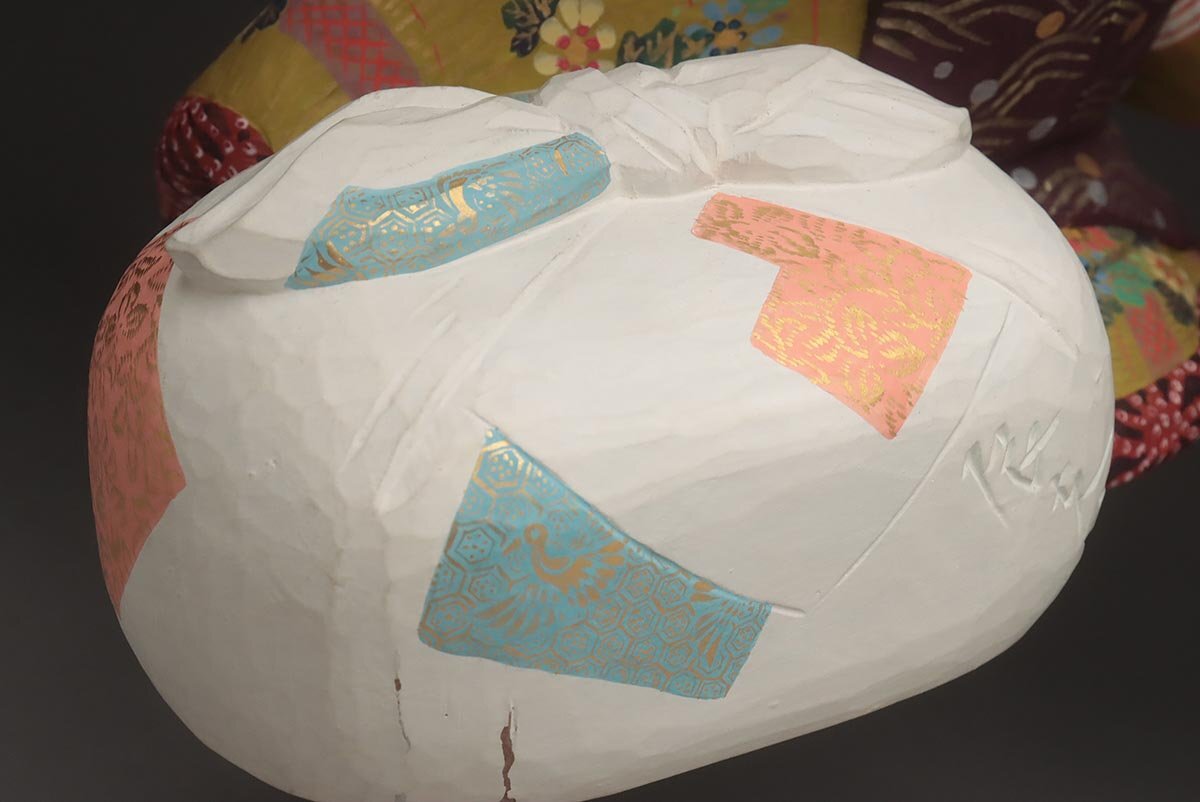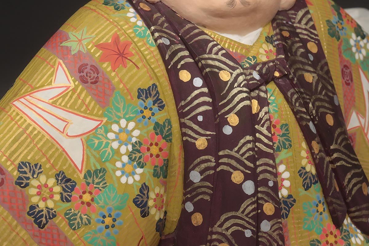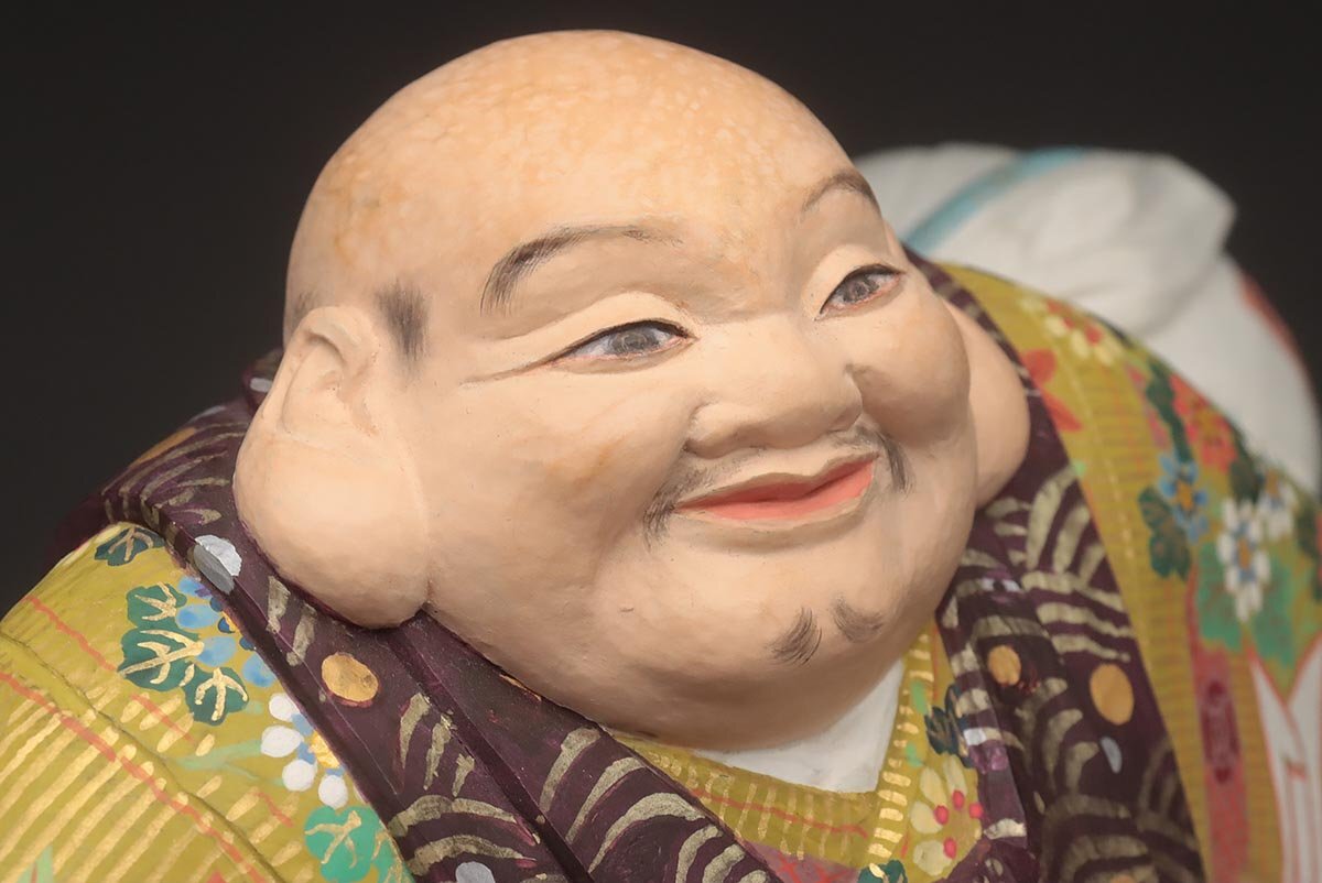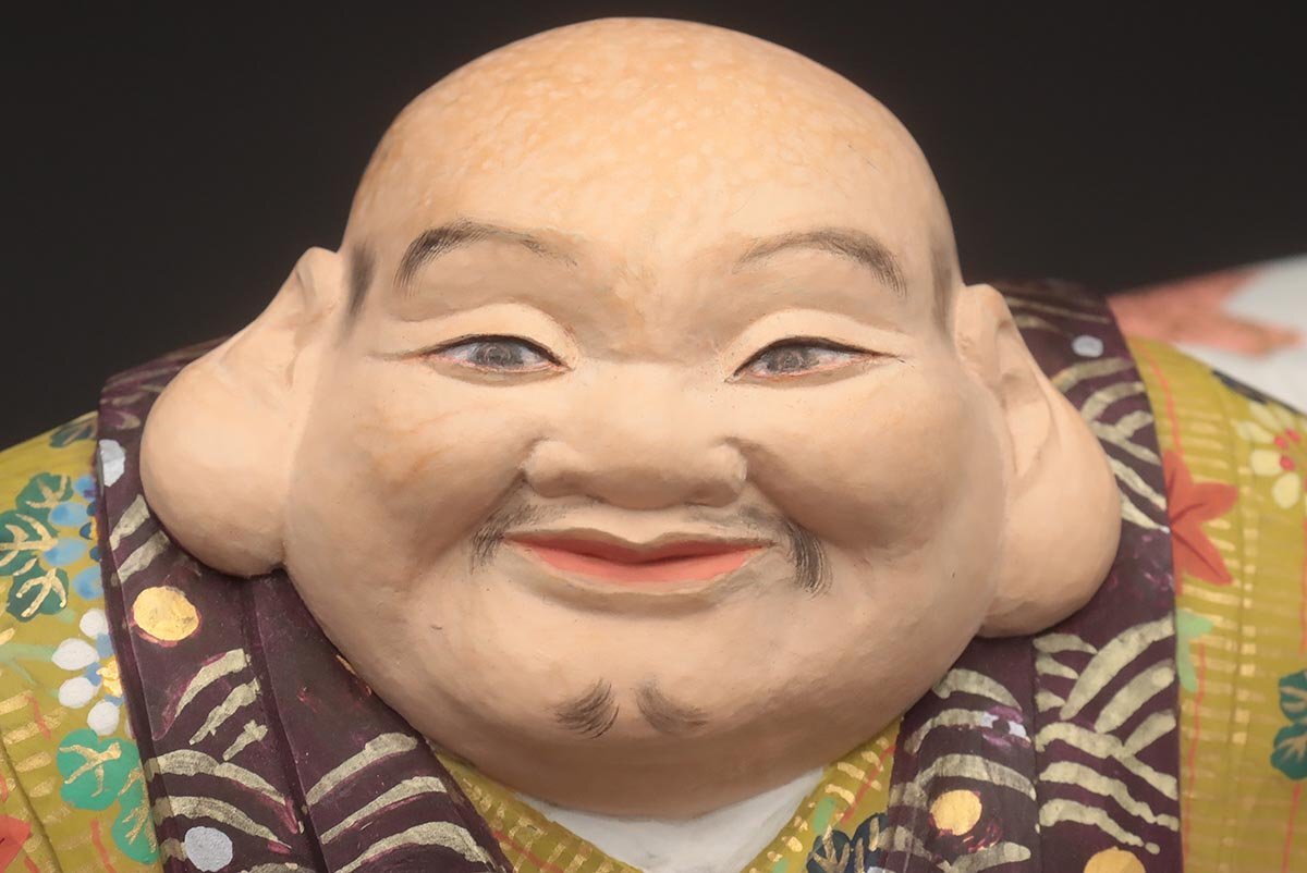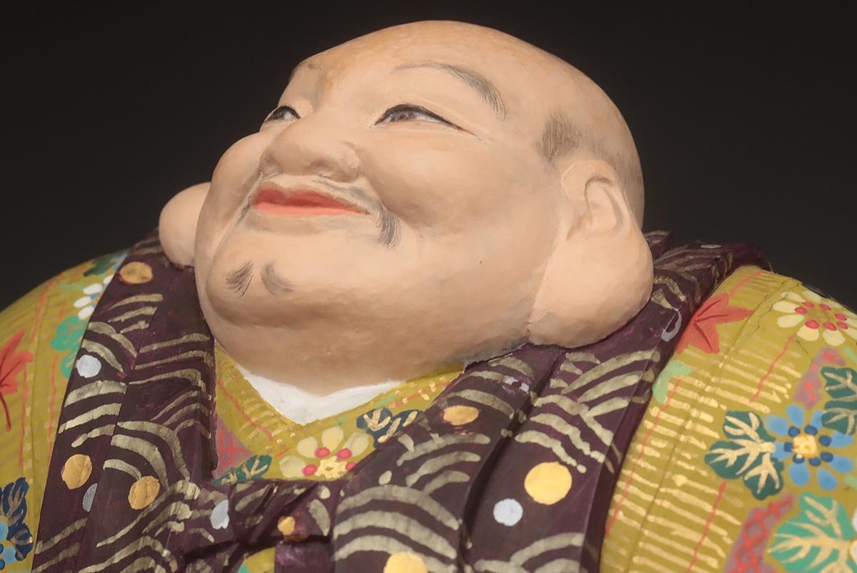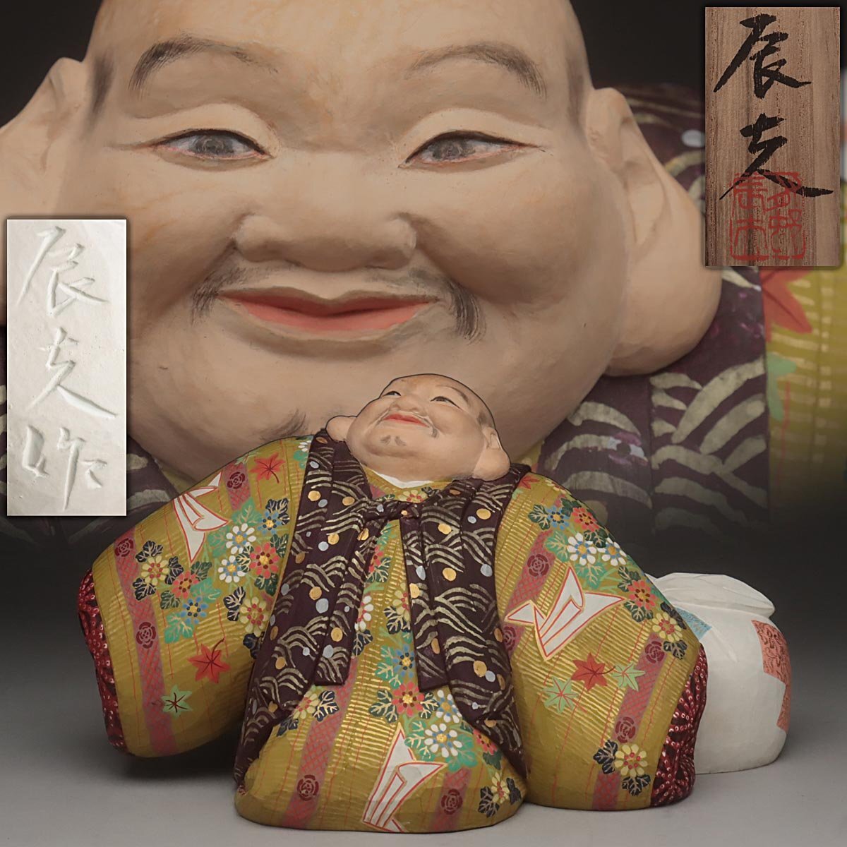 | ◆ 平櫛田中門下【有村辰夫 作】木彫彩色「布袋」置物 共箱 タトウ箱付・「招福布袋像」七福神 縁起物 床置 床飾 ◆