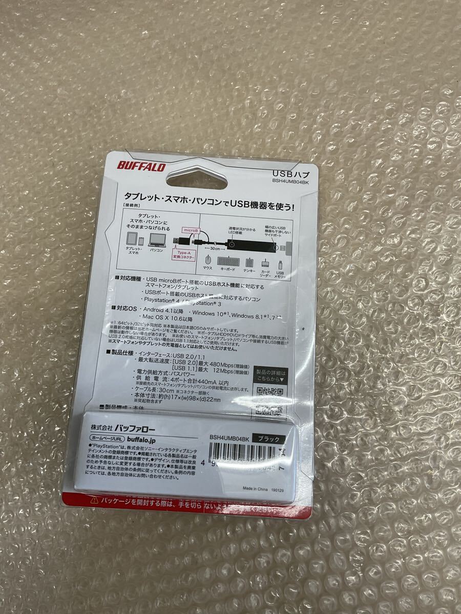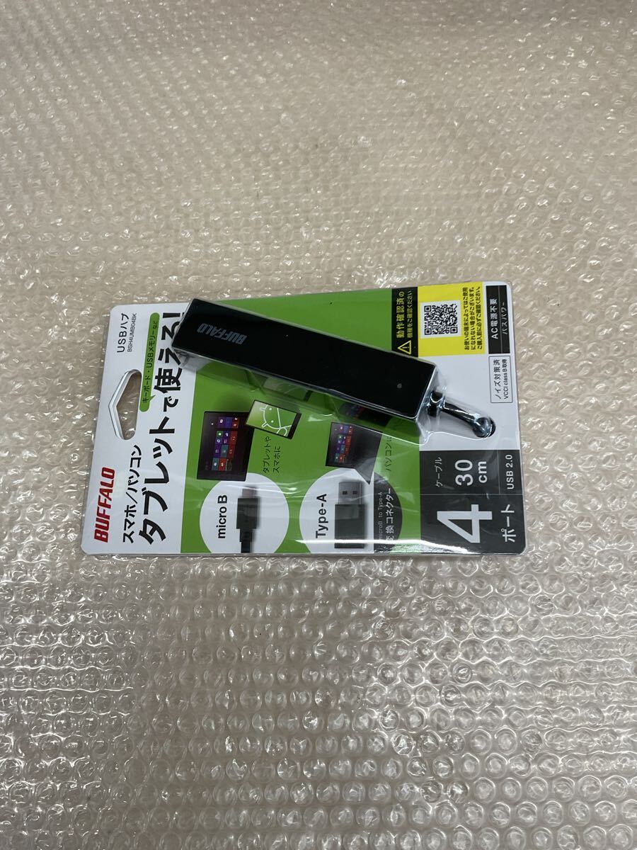 ◎(D2212) USBハブ バッファロー BSH4UMB04BK タブレット・スマホ用USB2.0 4ポートハブ 変換アダプター付き ブラック(辛2)