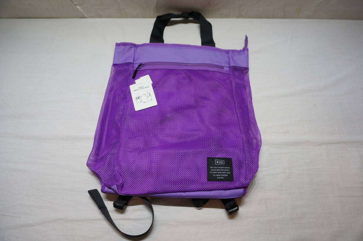 ●【L24A】kiu 2WAY メッシュ バックパック/トートバッグ インナーバッグ付属 パープル 定価5000円 タグ付き 未使用保管品