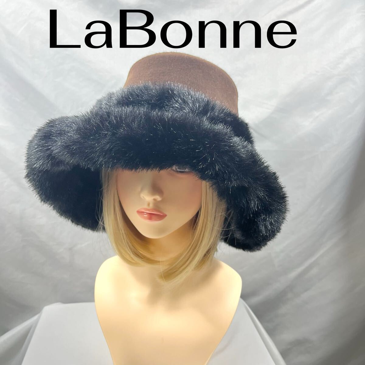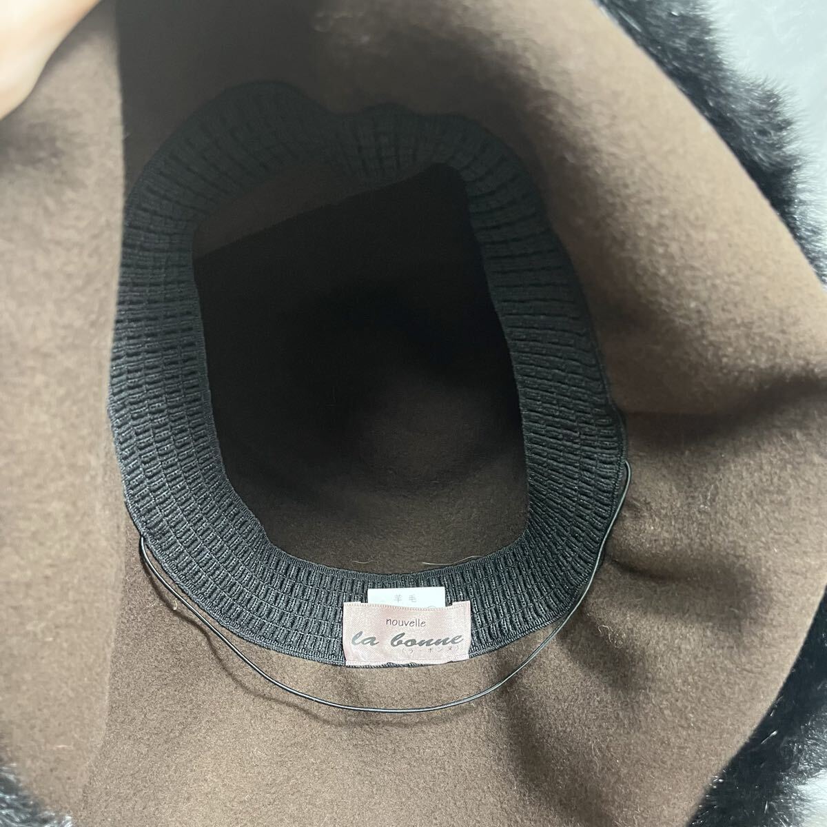 【レア】La bonne ウール・フェルトハット 茶/黒 ヴィンテージ ハット フェルトになります()