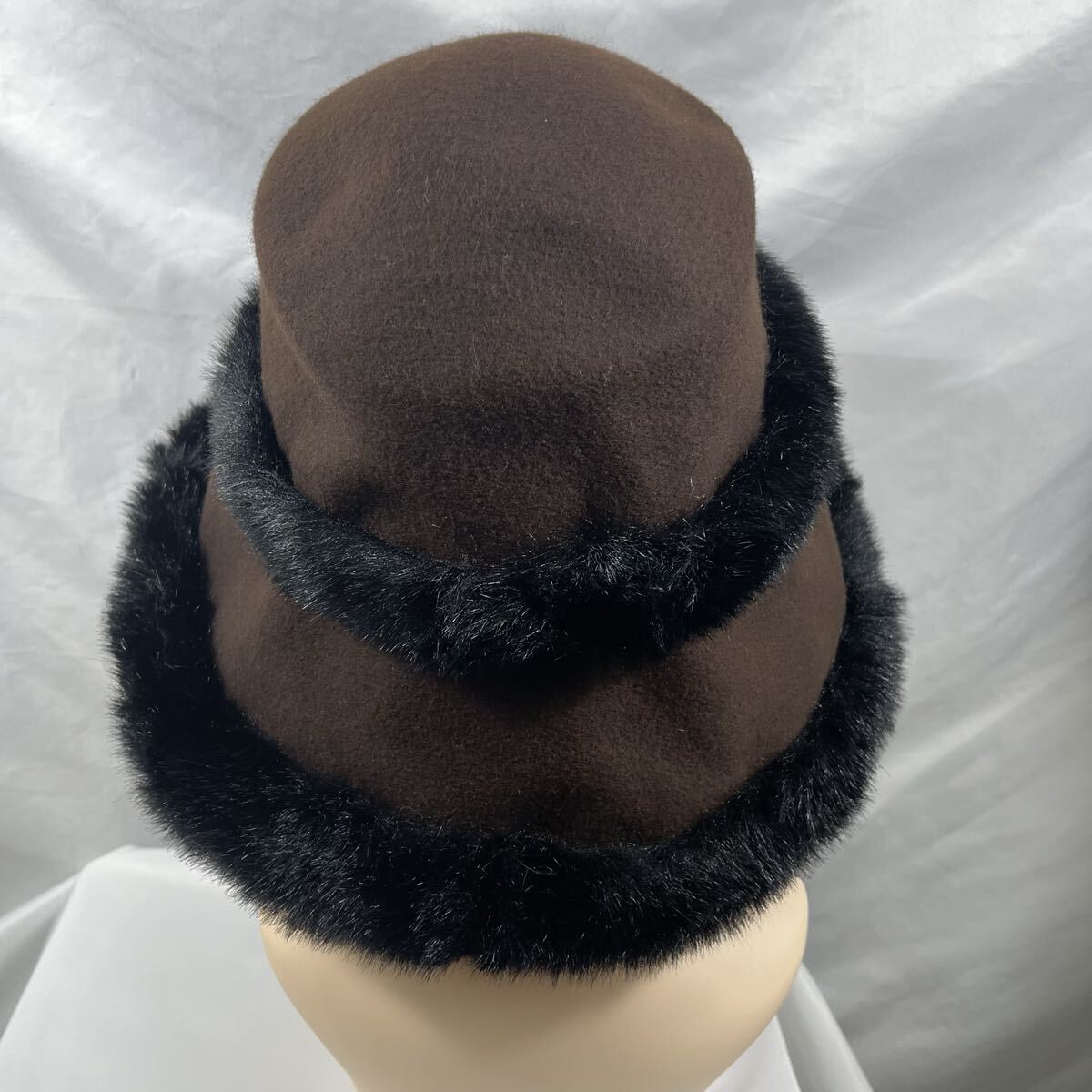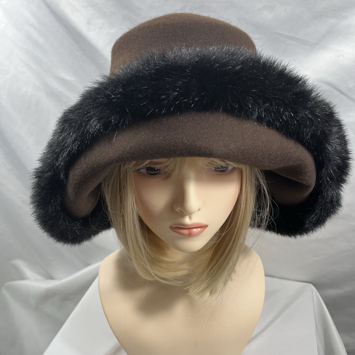 ・ウールとフェルトの素材にブラックファーの縁取りが施されたブラウンのハット。