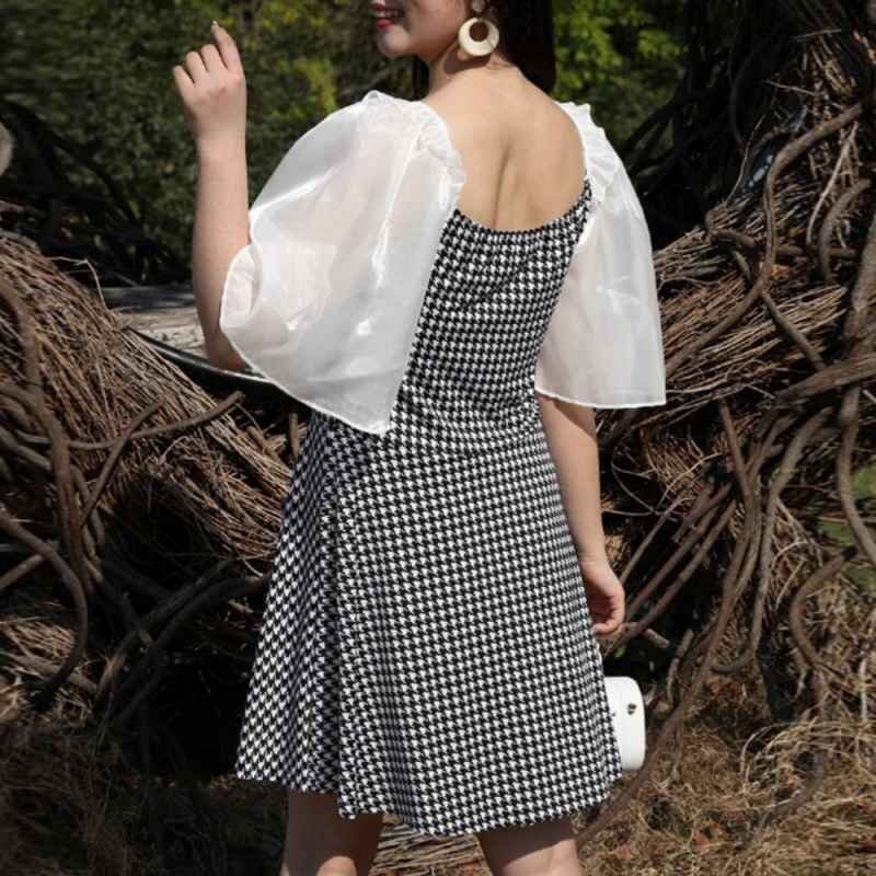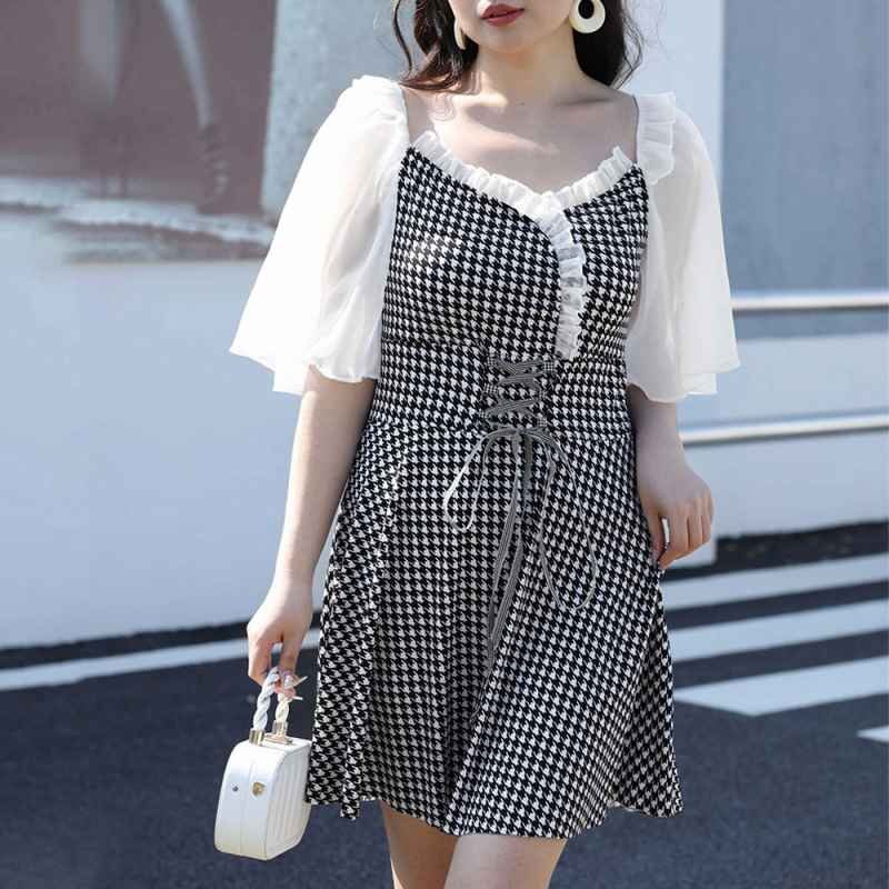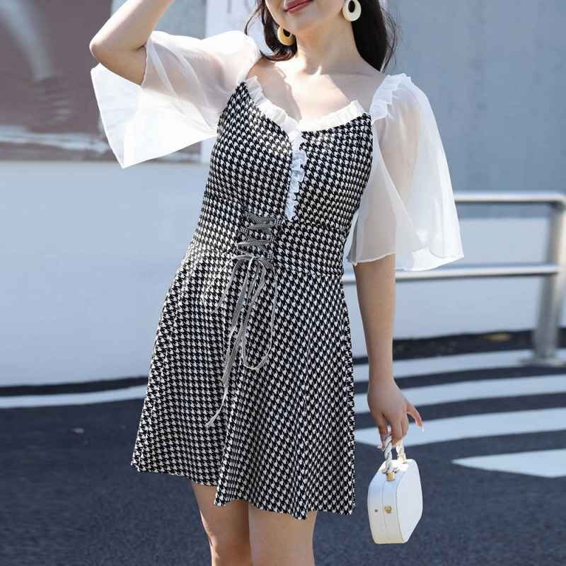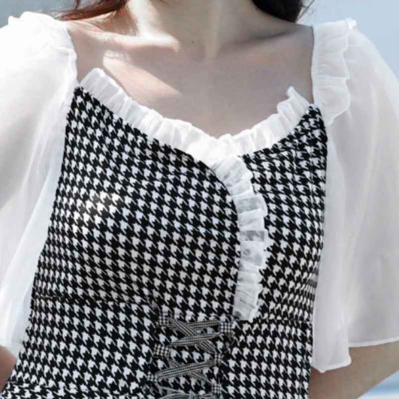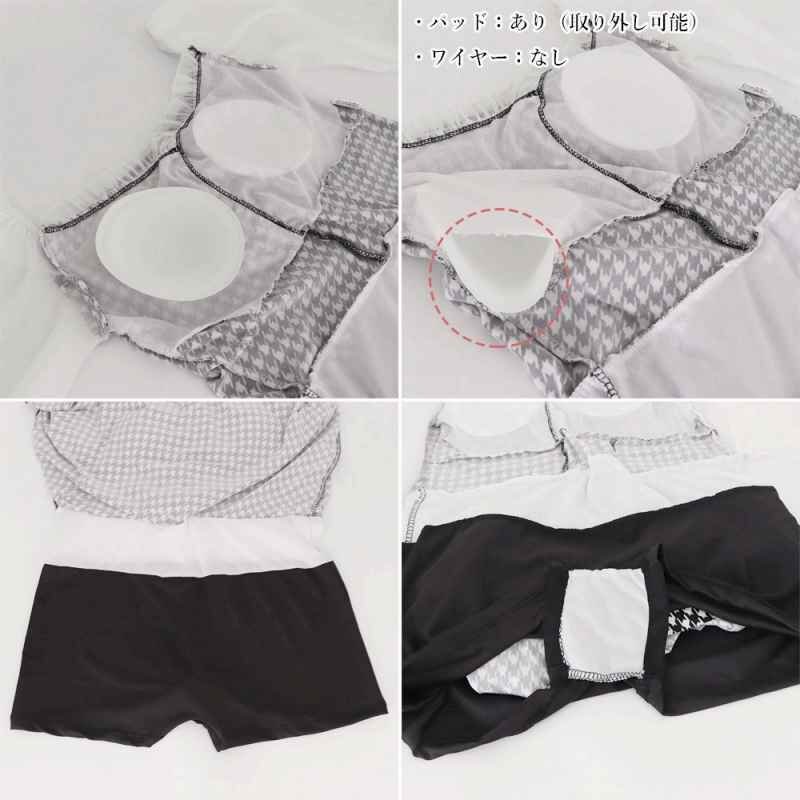 お洒落に体型カバーできる千鳥柄デザインのワンピース水着です。