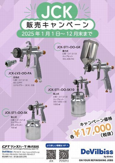 2025年12月25日まで期間限定の特価セールです。 限定品はスプレーガン本体(JCK-ST1-1.3SK10)と1000cc塗料カップ(KR-1000-1/4)のセットです。 景品としてデビルビスマルチ傘カバーも付属します。 |