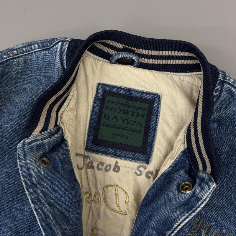 古着 NORTH BAY オーバーサイズ デニム 切替し 中綿 スタジャン バーシティ ジャケット M
