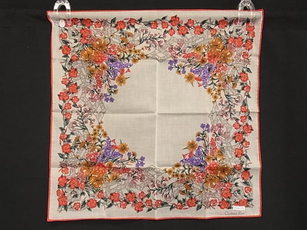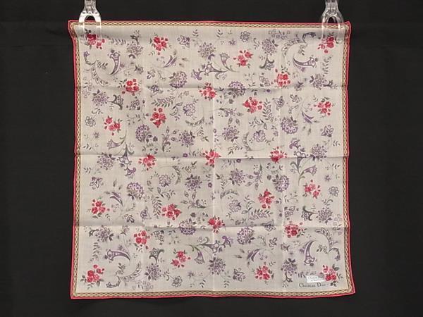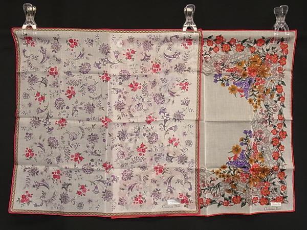 ■新品■未使用■ ChristianDior ディオール フラワー柄 ハンカチーフ ポケットチーフ 2点セット まとめ売り レッド系 DI3939