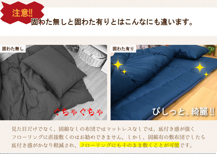 | ●無地でシンプルなお布団4点セット(掛け布団・敷き布団・枕・収納ケース) ■ご注文に際しての注意 | |