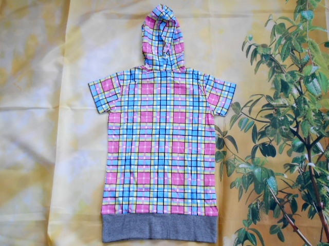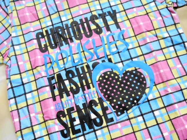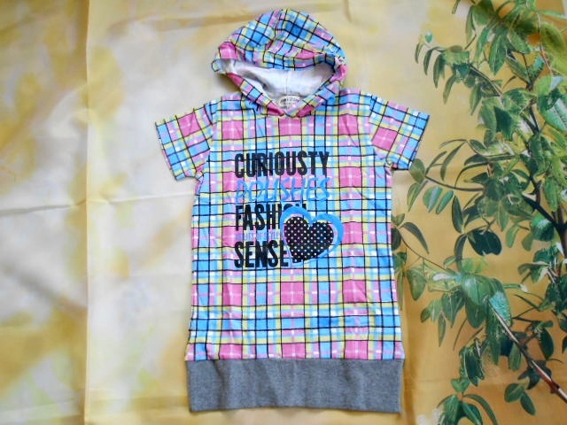 DC01☆ニッセン 半袖パーカーチュニック チェック柄 ハート 水色×ピンク 110㎝ 未使用 ニッセン
