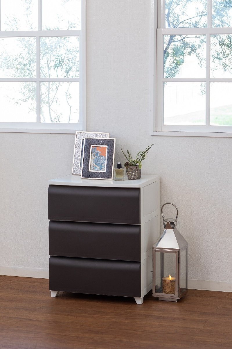 即決可@新品[日本製収納ケースプラスチック]ホコリが入りにくい3段ワイドチェストノーデュス 引き出し式ケース/ブラウン | ||||||||||||