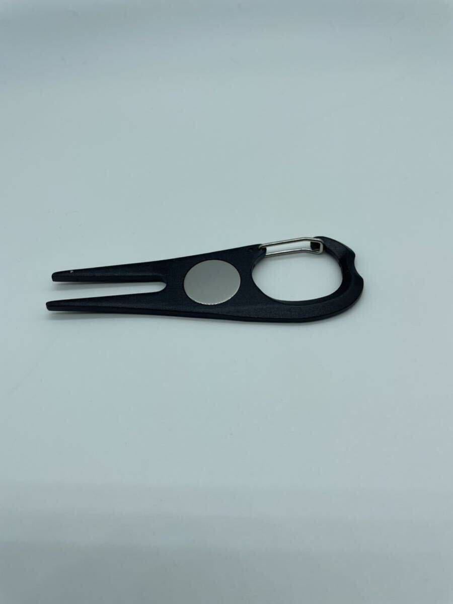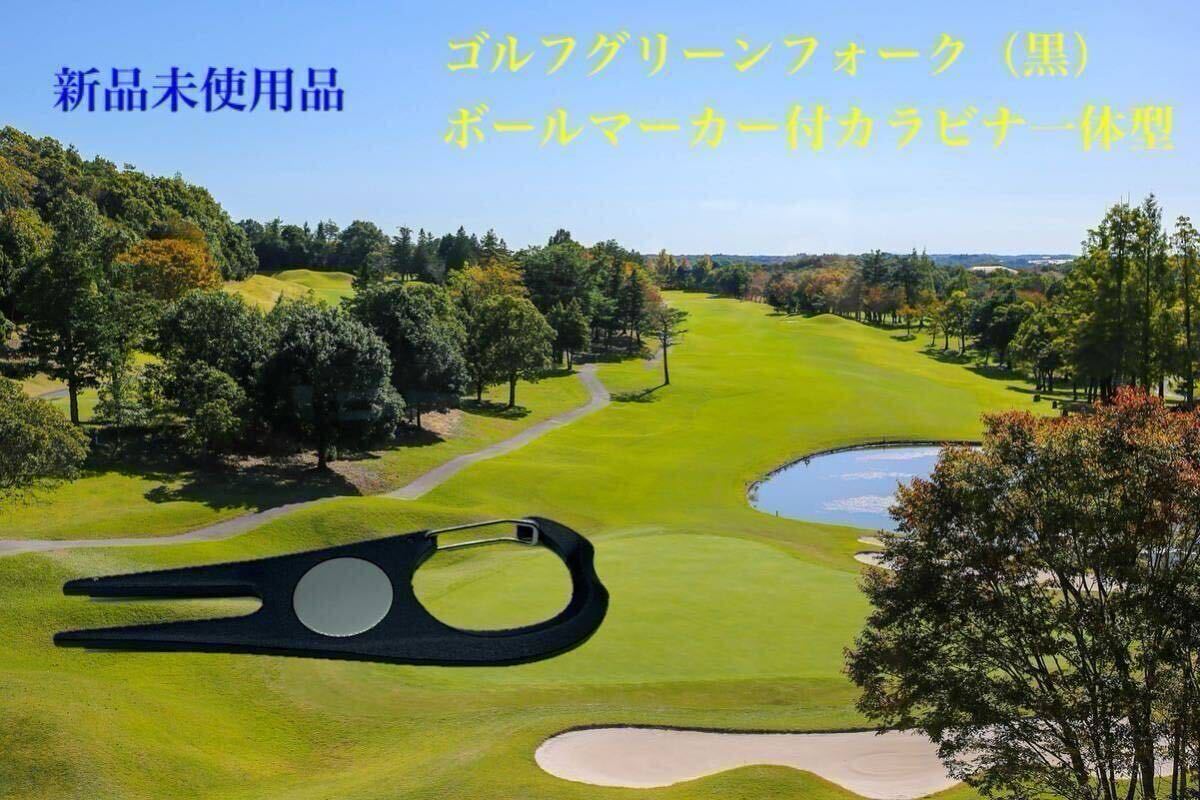 ゴルフボールマーカー付グリーンフォーク(黒)【カラビナ付】です。