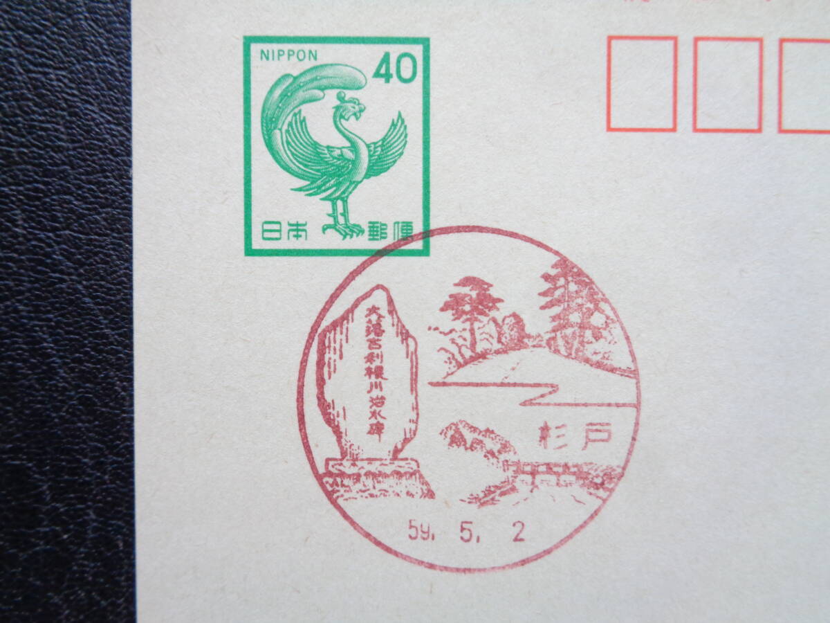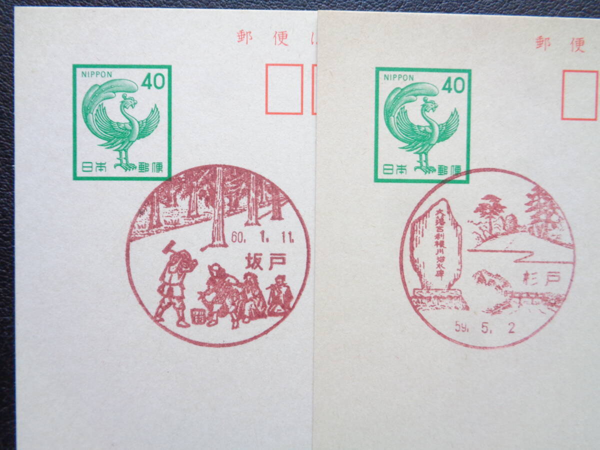 鳳凰はがき    初日印/風景印    埼玉県2枚    杉戸/S59.5.2    坂戸/S60.1.11