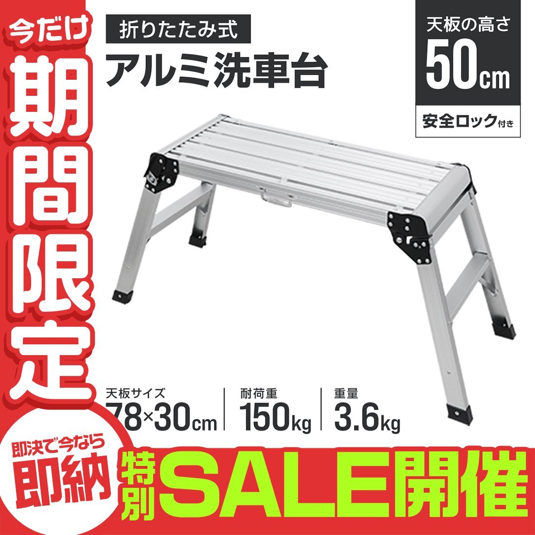 洗車や掃除などの高所作業に大活躍! 天板裏とステップには金具で補強を施し、安心して作業できる強度を実現しました。 \その他、安心安全ポイント/ ・天板、ステップ、脚キャップに滑り止め加工済 ・しっかり固定できる安全ロック搭載! ・幅広ステップで安定感抜群 ・安心の耐荷重150kg 女性でも片手で持ち運べる軽量設計! また、ブラックには持ち手付きで持ち運びやすさ抜群です。 水に濡れてもサビにくく丈夫なアルミ製で、様々な作業に使用可能。 その他、荷物置きや作業台、ベンチとしてもご使用いただけます☆ 【商品仕様】 《サイズ(約)》 全体:幅108.5×奥行40×高さ50cm 天板:幅78×奥行30cm 折りたたみ時:79×16.5cm 重量(約):3.6kg 耐荷重(約):150kg 材質:アルミニウム、ABS樹脂、プラスチックメッキ (アルミ足場台 アルミ脚立 アルミ洗車台 ラダー アルミラダー 高所作業 掃除 そうじ 大掃除 雪おろし ガーデニング 作業 洗車 日曜大工 避難 多目的はしご 折り畳み 人気 おすすめ WEIMALL) |