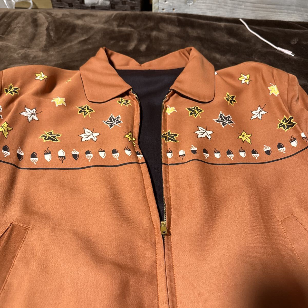 片側はオレンジベースのドングリ紅葉柄で裏側は黒色