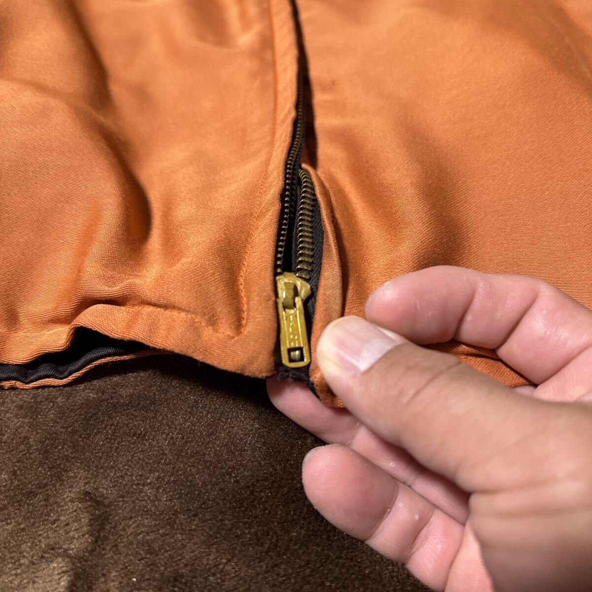 ジッパーはTALONジッパーです。リバーシブルなので裏表に引手あり。バタフライではありません