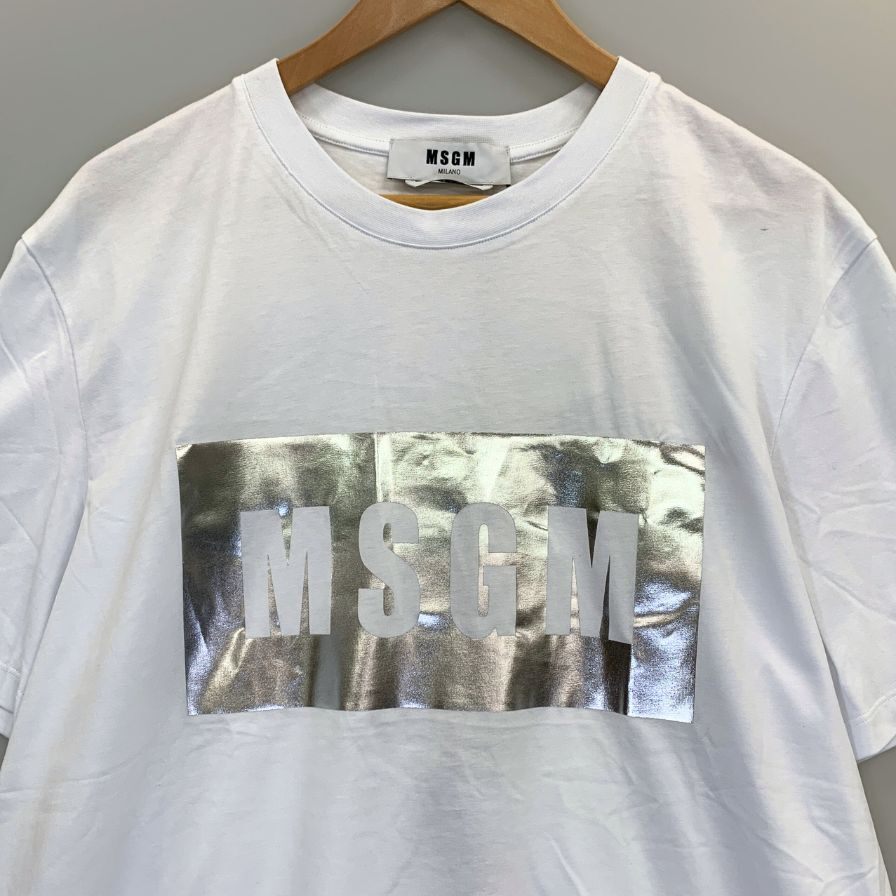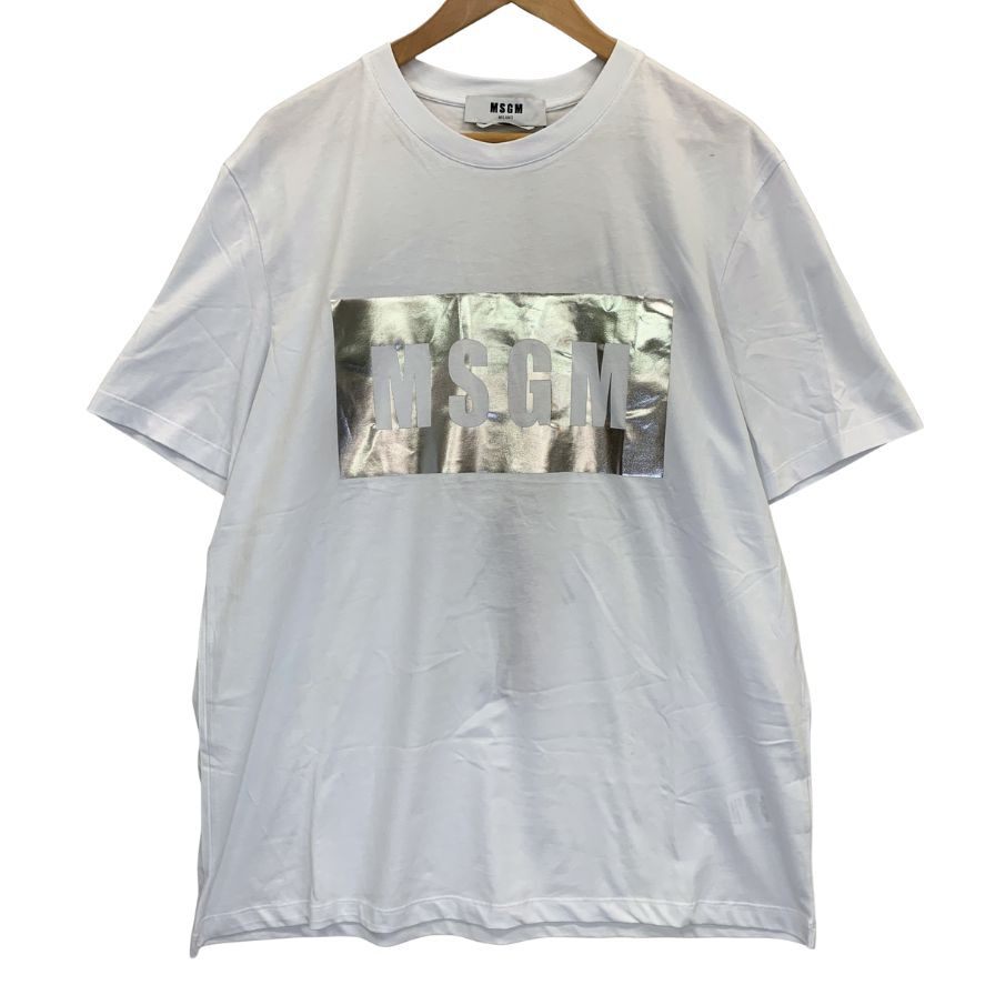新品同様◆Tシャツ エムエスジーエム Tシャツ 半袖 メタリック プリント ホワイト シルバー メンズ サイズL MSGM 【AFB6】