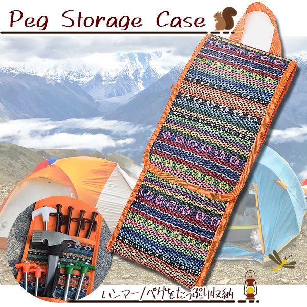 ☆3段ポケット ペグ収納ケース 【商品名】 3段ポケット ペグ収納ケース 【商品説明】 ペグやハンマー等をまとめて収納できる便利なケースです。 固定ベルトが付いているので、ハンマーを安全に持ち運び! 中でグラつくことなく、外に出ることなく安全安心です。 ポケットをうまく活用して整理整頓! 3段ポケットで様々なサイズのペグに対応しています。 ペグの長さ40cm 9本(上段)、30cm 10本(中段)、20cm 15本(下段)が同時収納可能です。 ※1 柄は人気のネイティブ柄でアウトドアにピッタリ! 内側の素材はポリエステル1680Dでとっても丈夫なので、 ※2 ペグやハンマーを入れても安心安全に持ち運べます。 【サイズ】 本体 42cm×幅18cm 中のポケット 上段:32cm 中段:25cm 下段:18cm 【重さ】 約150g 【素材】 外:綿麻 内:ポリエステル1680D ※1 ペグの太さや種類により収納本数は前後します。 ※2 1デニール(長さ9000m)で1680gの糸を使用。 キーワード 大容量 持ち運び ポケット ベルト ストレージバッグ 工具入れ ペグ 収納 アウトドア DIY ストレージバッグ ペグバッグ キャンプ 初心者 テント タープ |