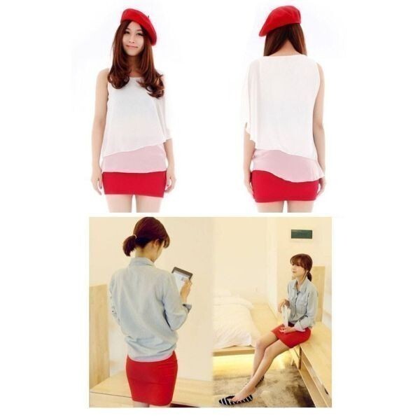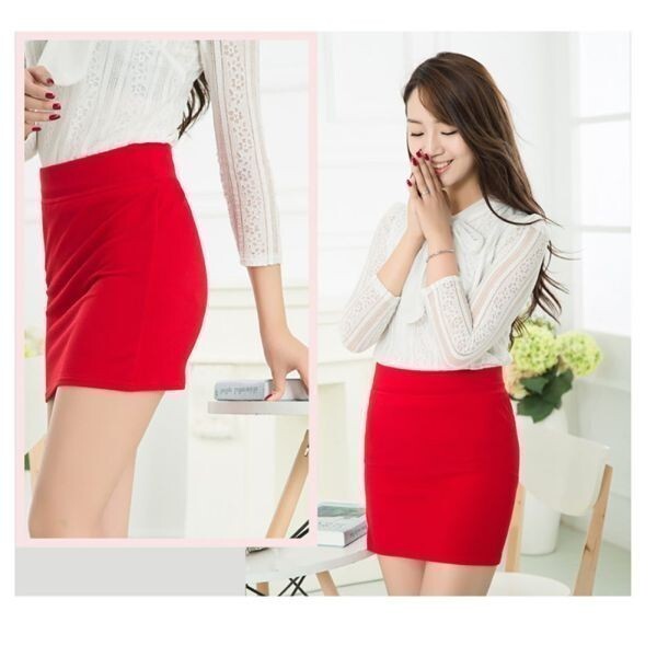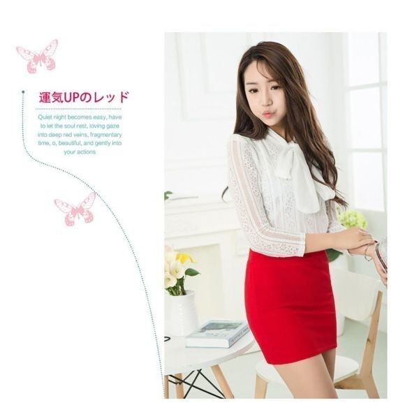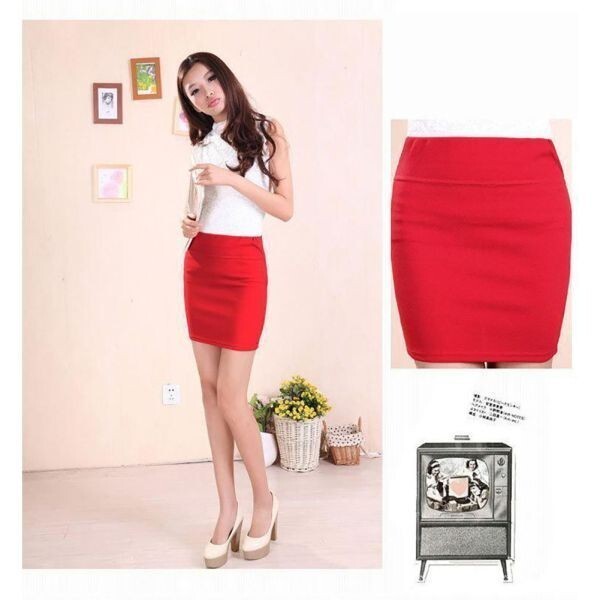 ミニ スカート タイト ストレッチ 無地 膝上 レディース ハイウェスト フリーサイズ 赤 レッド