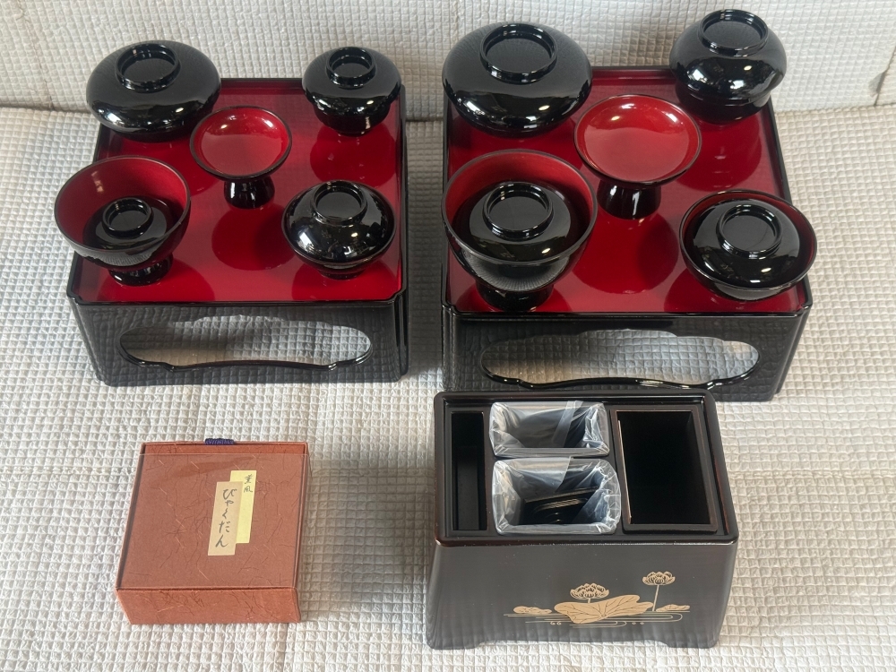 ・御霊具膳 ×2膳(膳1/椀4[飯・汁・平・煮物 各フタ付]/高坏1 を各膳に含む)USED美品 ※箸がついていません