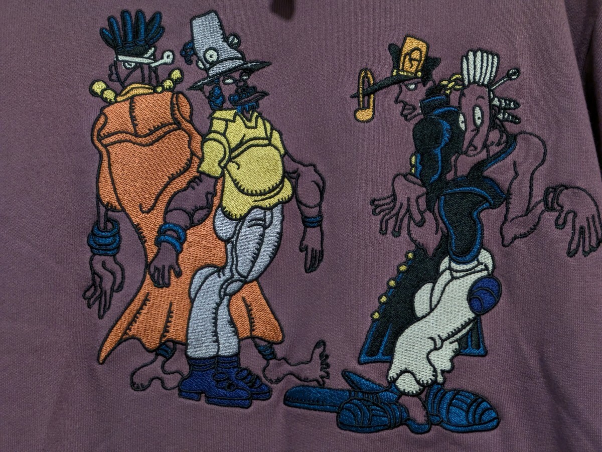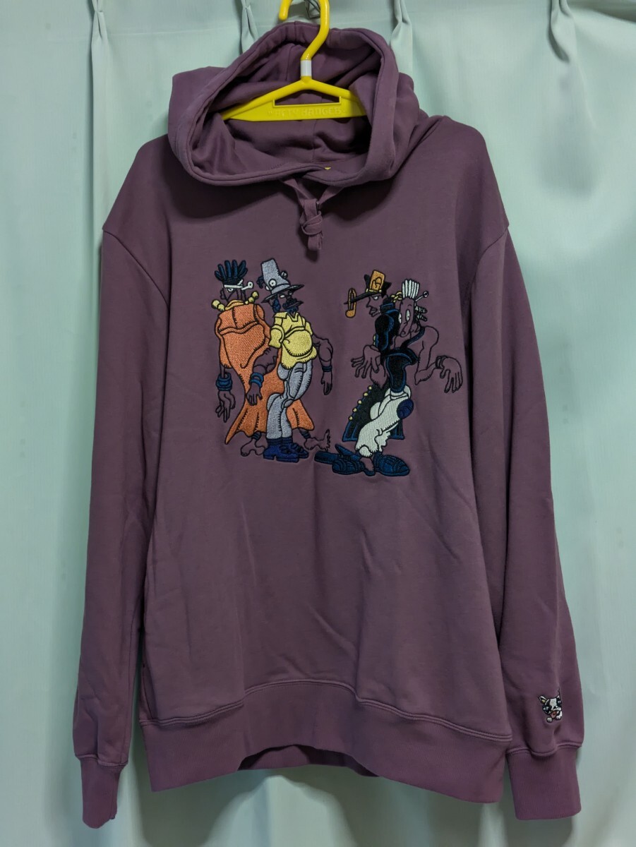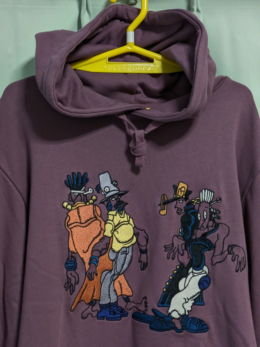 グラニフ ジョジョ オインゴ・ボインゴ兄弟 パーカー М 承太郎ポルナレフジョセフアブドゥイギートト神漫画 グラニフジョジョコラボパーカ Mサイズ:丈68身幅54 私的良品ですが中古なの神経質は避けてください アニメ『ジョジョの奇妙な冒険 スターダストクルセイダース』より。仲良し兄弟のオインゴとボインゴ。弟ボインゴのスタンド「トト神」は100%の確率で近い未来を予知し漫画本に描き出す。その能力で描かれた承太郎、ポルナレフ、ジョセフ、アブドゥル、イギーが刺繍されたデザイン。本の表紙をイメージした織りネームもポイントです。 他にTシャツ多数出してます 女性モデル身長:168cm、着用サイズ:S graniph 男女兼用 3部 ジョースター一行エジプトツアー ディオ 092965