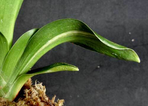 ゆず肌で葉幅がある中型のおもとです。胡麻縞かもしれませんが、薄い縞が見えます。