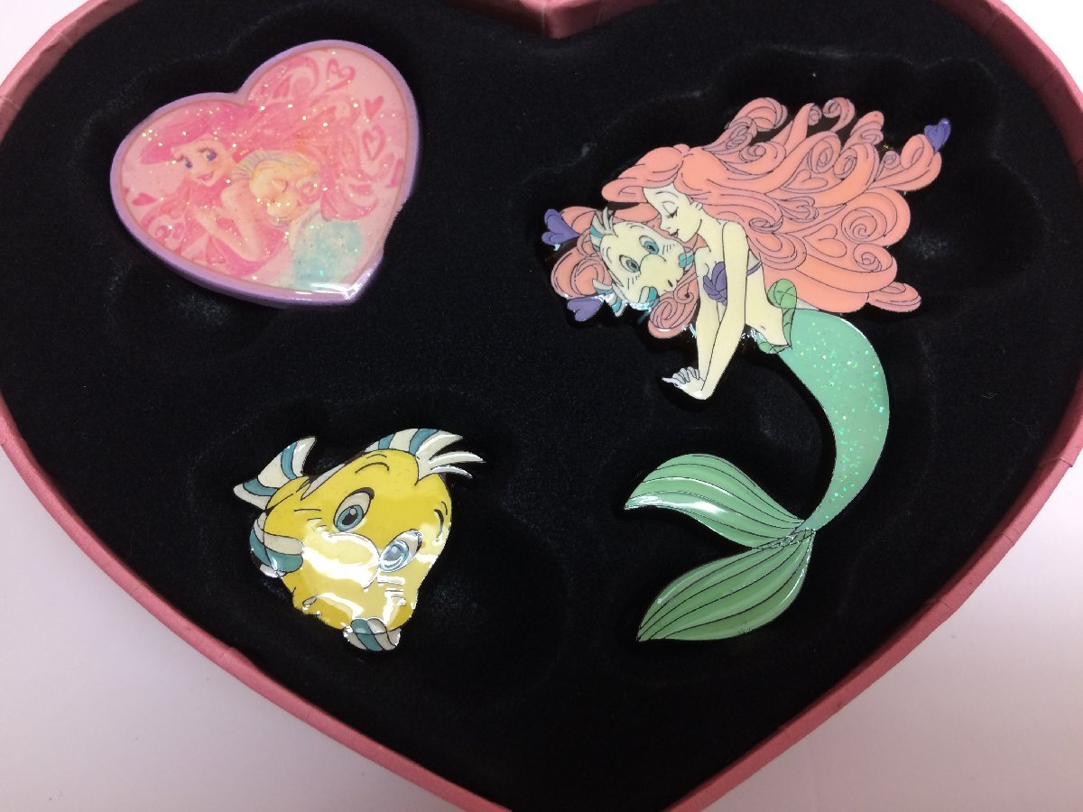 ディズニー ストア 箱入りピンバッジセット リトルマーメイド アリエル フランダー ハート 3A11 【60】