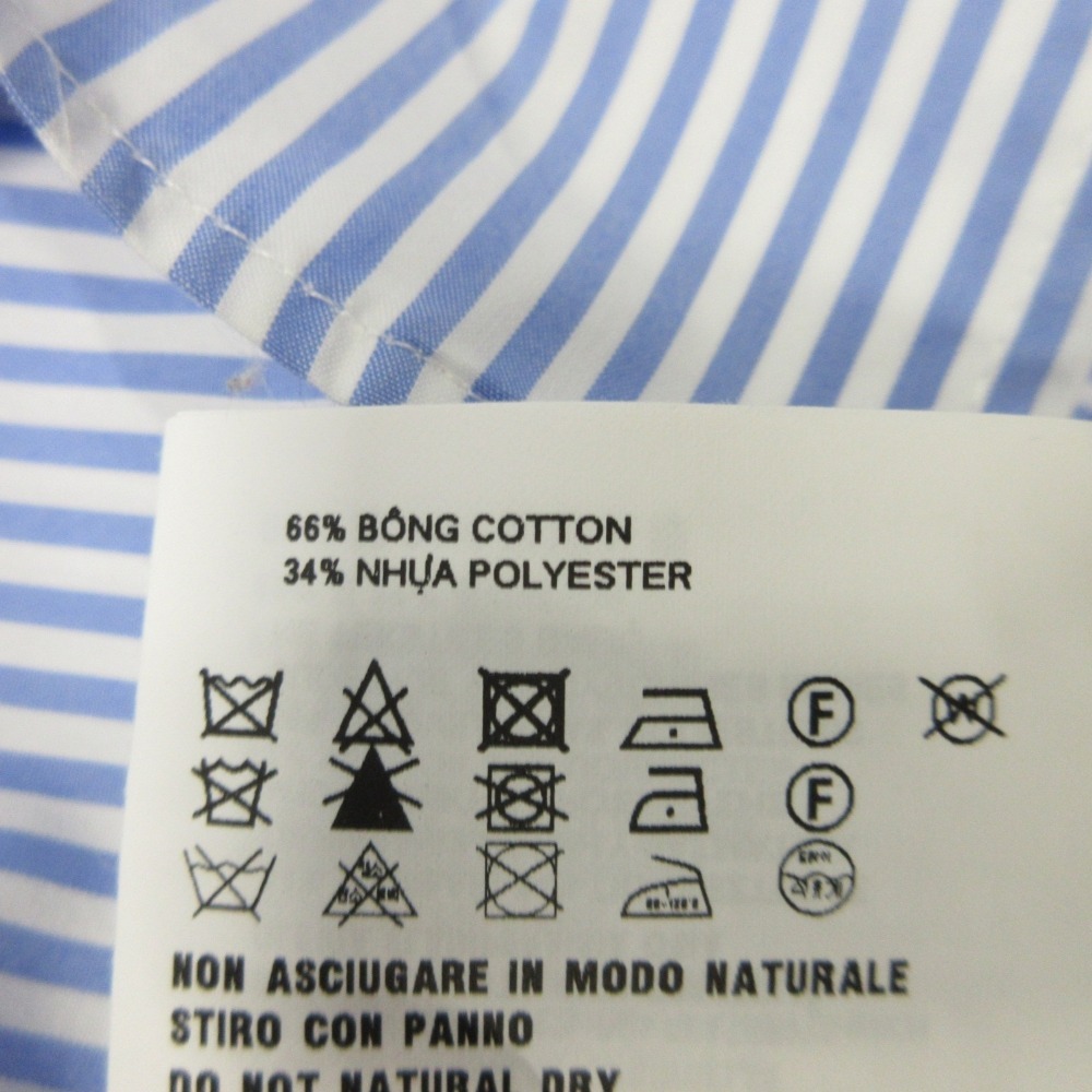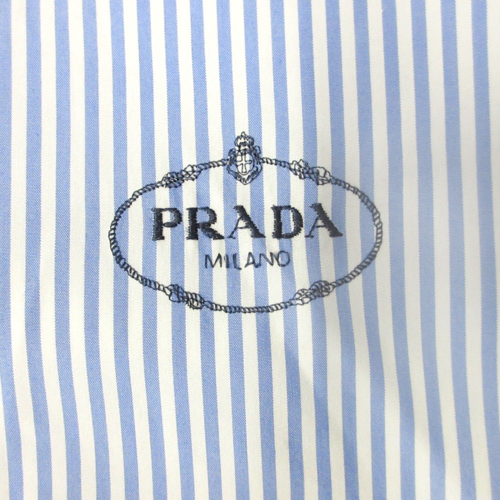 商品名:24ss PRADA プラダ ボタンダウン シャツ ブラウス カットソー 金ボタン ロゴ 刺繍 ストライプ 七分丈 36 青 ブルー 白 ホワイト