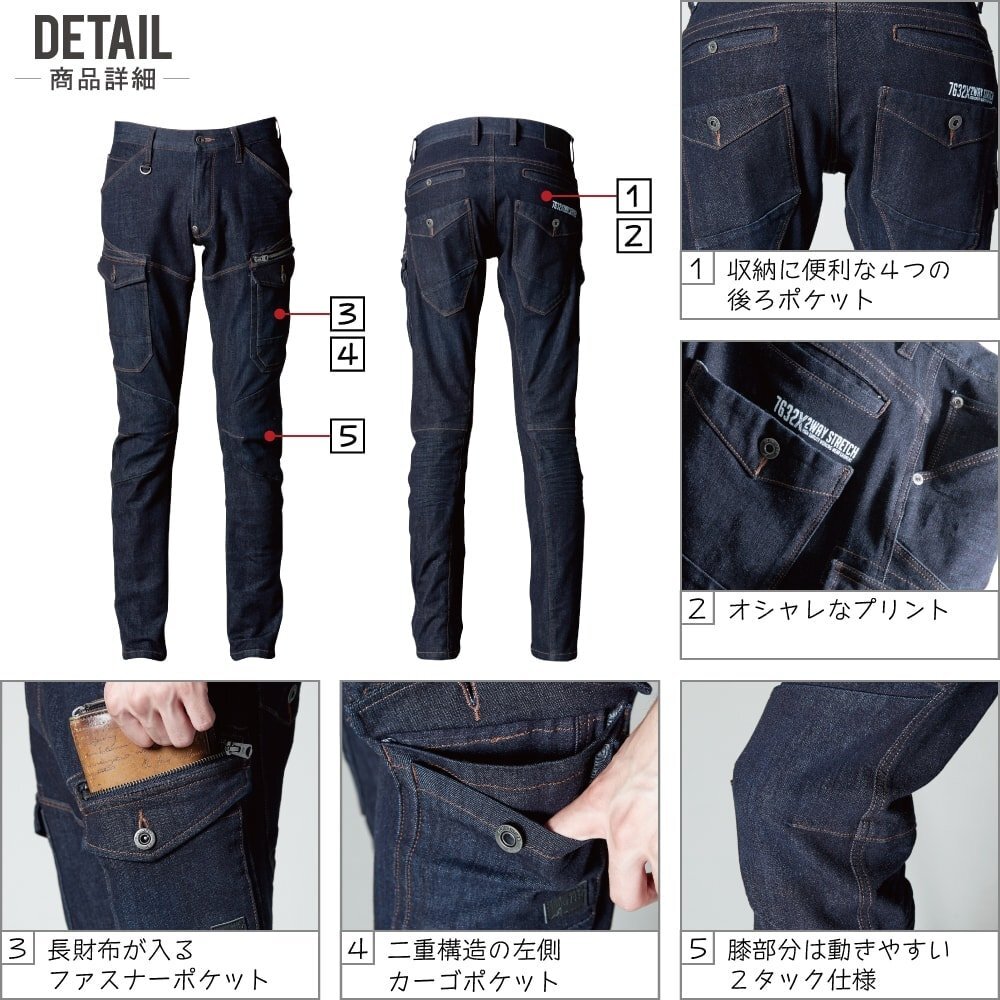 特長:ストレッチ/タフ素材/スリムシルエット