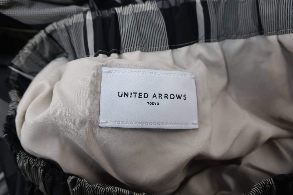 【送900円】1503 UNITED ARROWS ユナイテッドアローズ ミモレ丈フレアスカート サイドジップ ポリ100% チェック柄 36