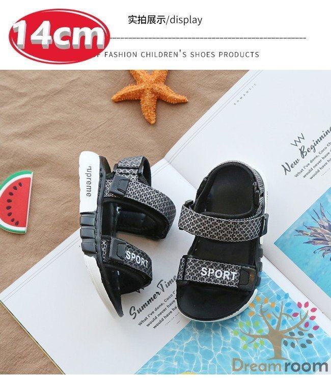 1スタ☆kids 幾何学総柄 サンダル 【グレー 14cm】 韓国子供服 キッズ ブーツ 子供用 女の子