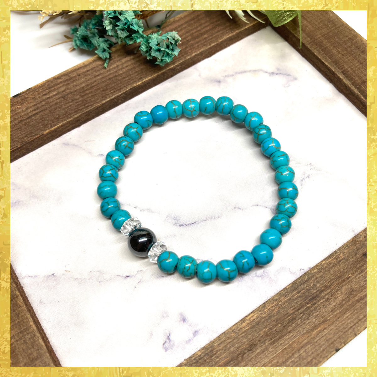 【SALE・送料無料・即決】ヘマタイト &ターコイズ ブレスレット パワーストーン 8mm×6mm / メンズ レディース 男性 女性 お守り