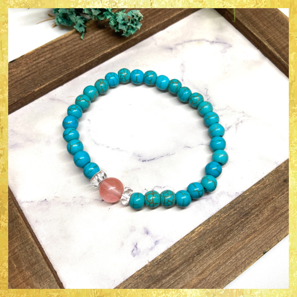【SALE・送料無料・即決】チェリークォーツ&ターコイズ ブレスレット パワーストーン 8mm×6mm / メンズ レディース 男性 女性 お守り
