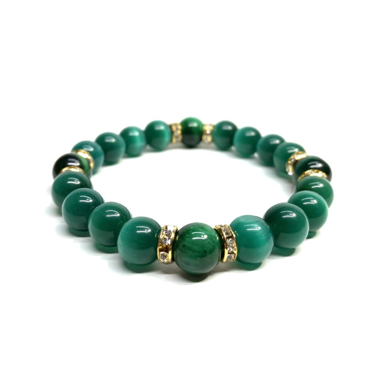 キャッツアイ(ダークグリーン)×グリーンタイガーアイ パワーストーン ブレスレット (ゴールド) 10mm 数珠ブレス メンズ・レディース 男性