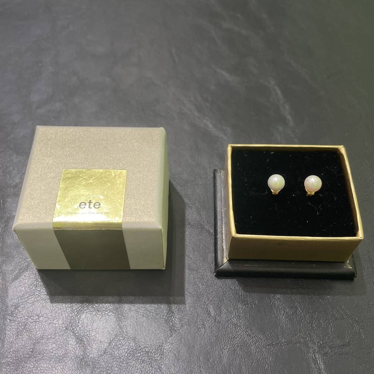 ◆さりげなく艶めくパールが耳元を彩る!! ete エテ パールピアス アコヤ真珠 金具K18刻印 ゴールド 金 ジュエリーBOX付 【188YO】I29 | ||