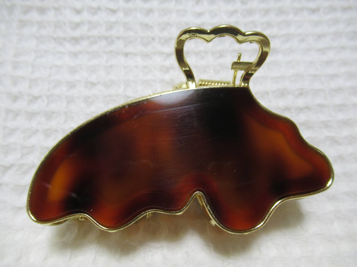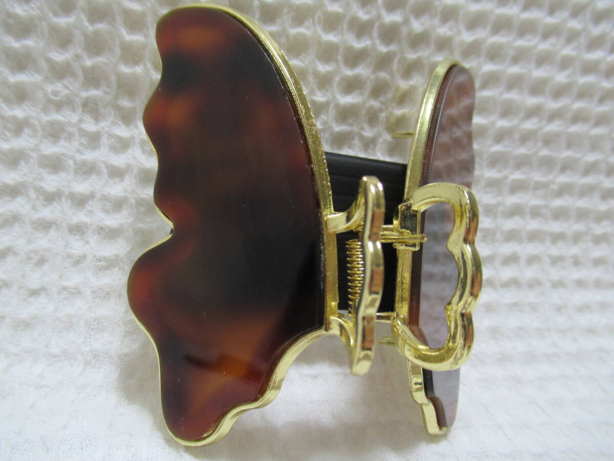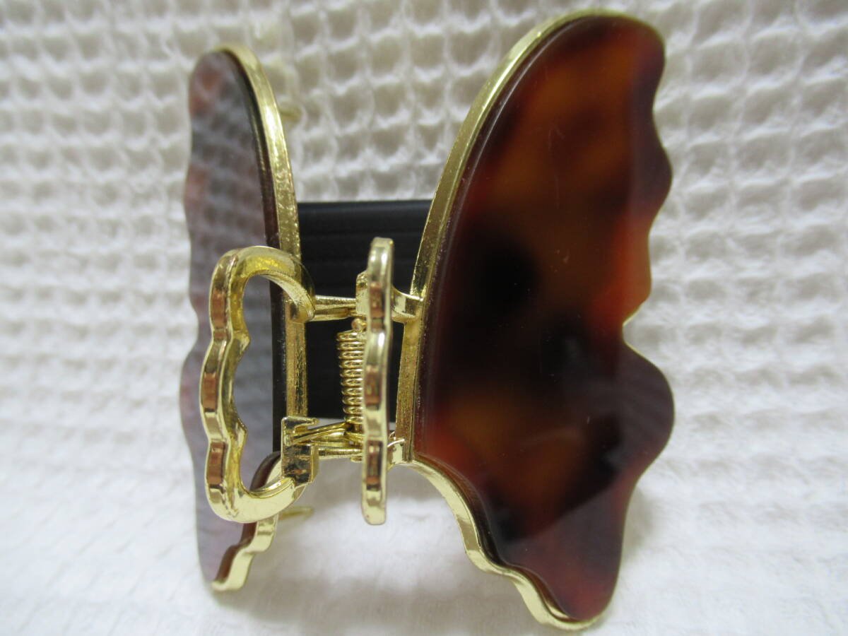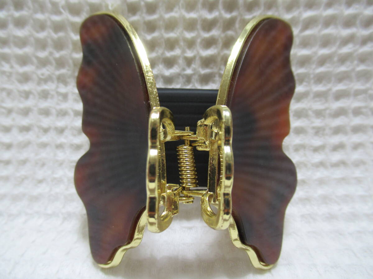 アクリル系付き ゴールドメタル蝶型バンスクリップ ブラウン系の濃淡 難アリ