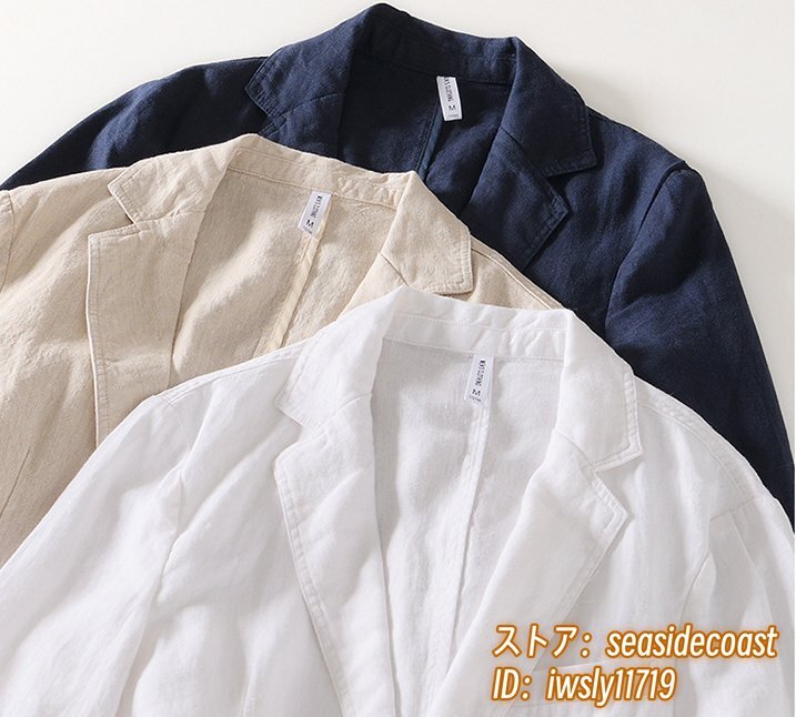 最高級 テーラードジャケット メンズ 春夏 コート リネンジャケット ブレザー 背広 薄手 麻スーツ デザイナーズ 無地 清涼感 ホワイト M