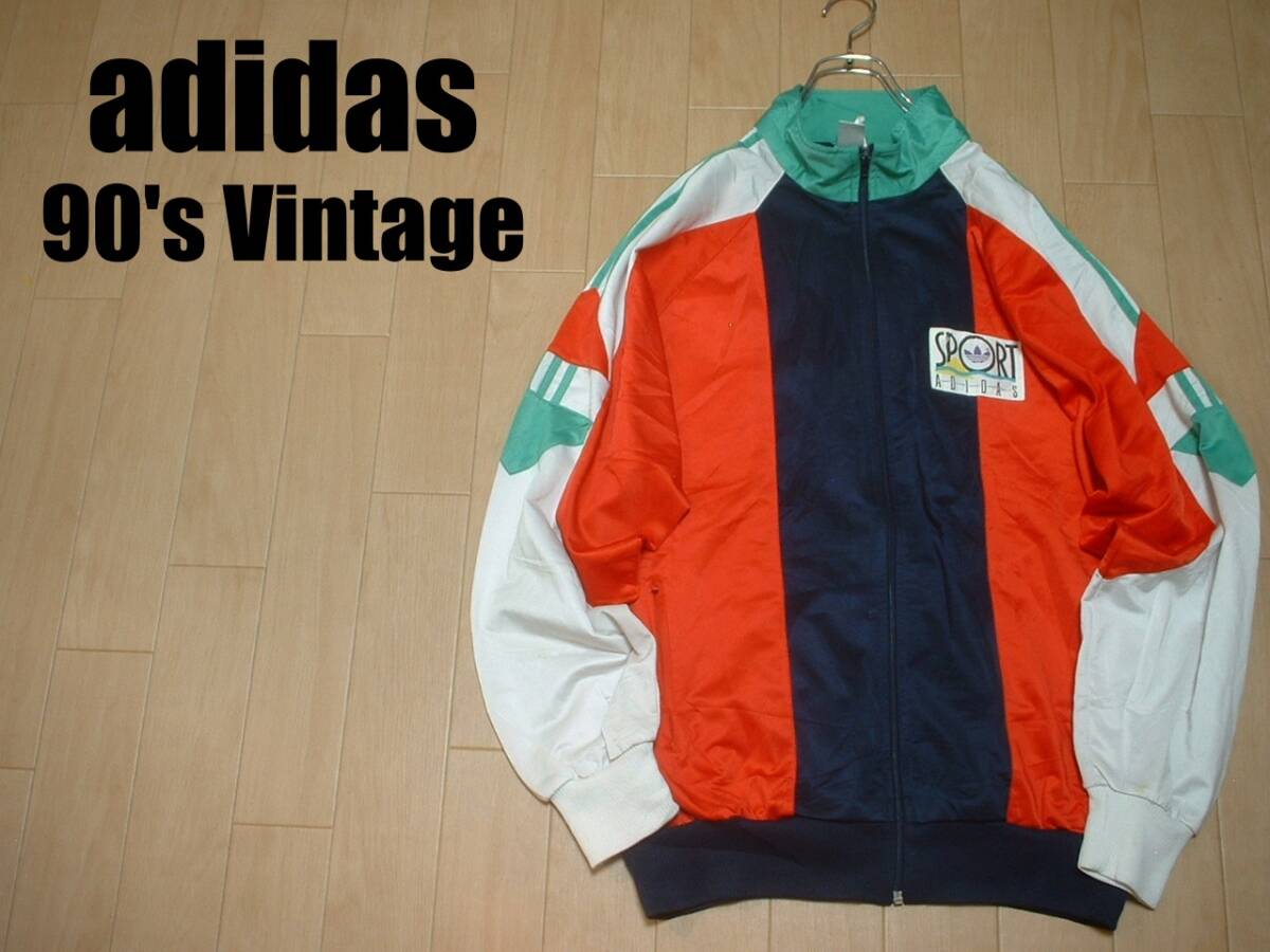 90sビンテージadidasマルチカラートラックジャケットUSA-XLシンガポール製SPORT正規アディダススポーツジャージトップ万国旗タグ常田大希