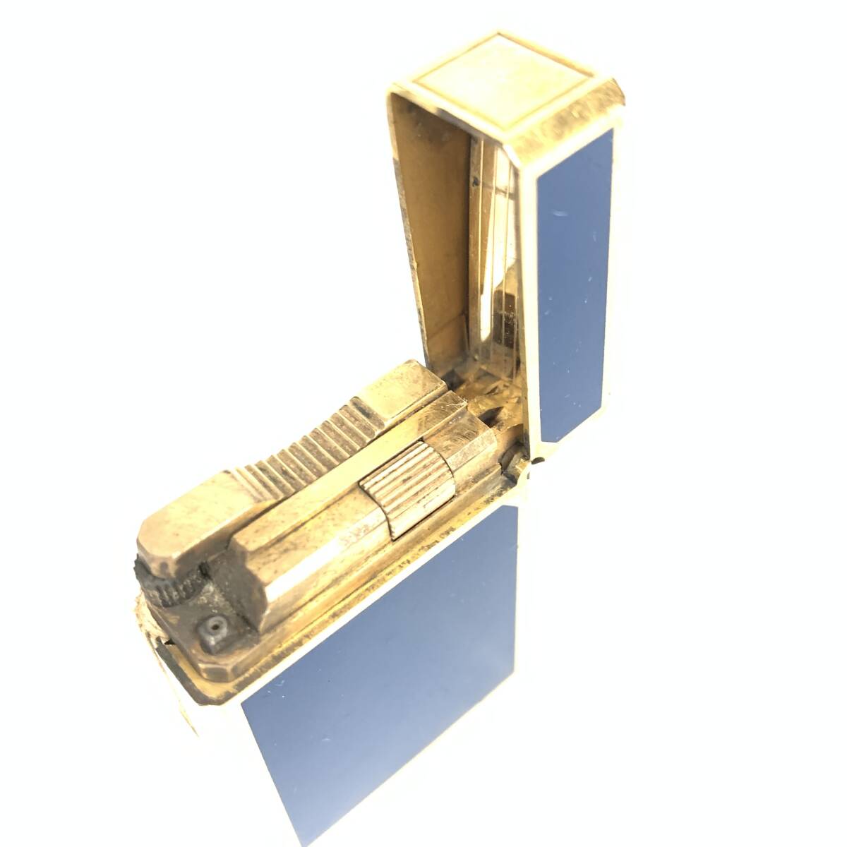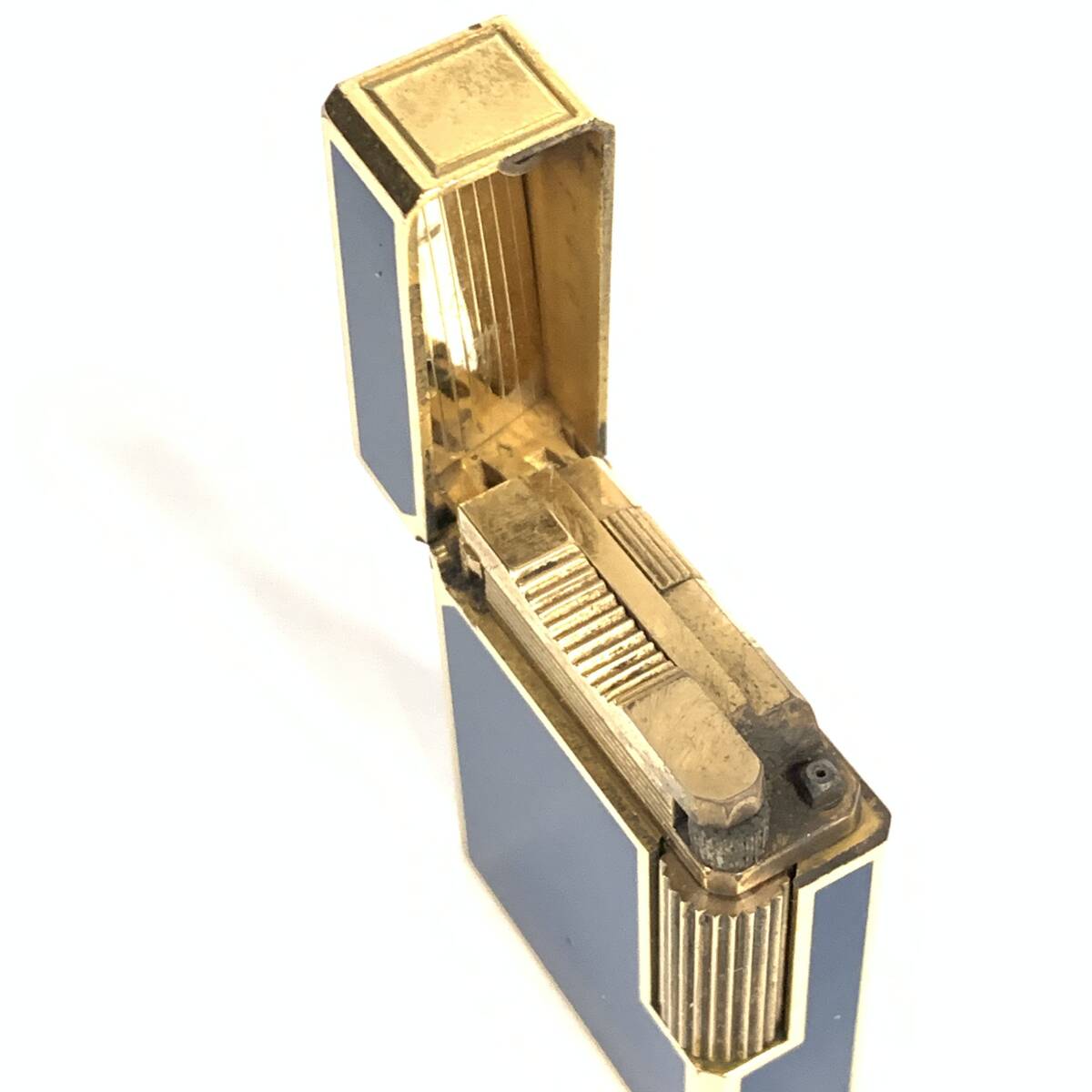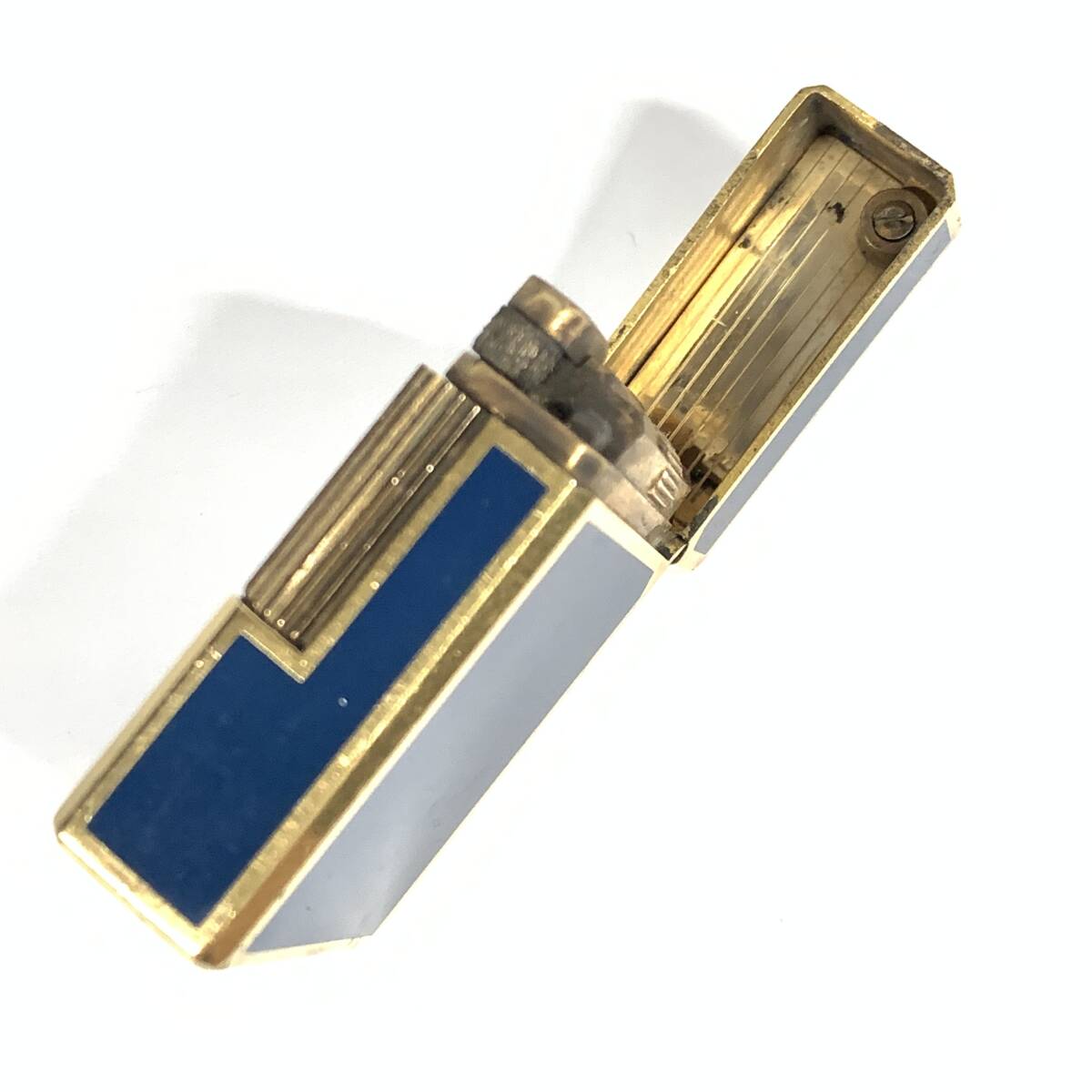 1円~ 6TA93170925 S.T.Dupont デュポン ライン1S ショート スモール ガスライター ブルーラッカー/ゴールド 火花未確認 現状品