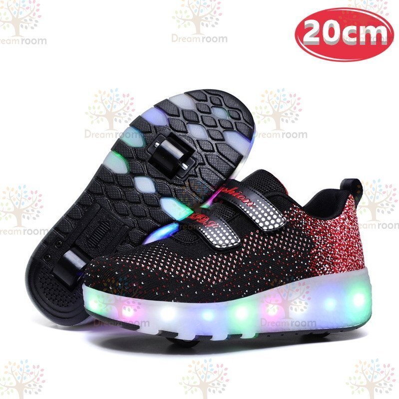 光る☆LED ライトアップスニーカー&ローラーシューズ 一体型 【K-375ブラック 20cm】夜間 スケート靴 反射材 ジョギング 自転車