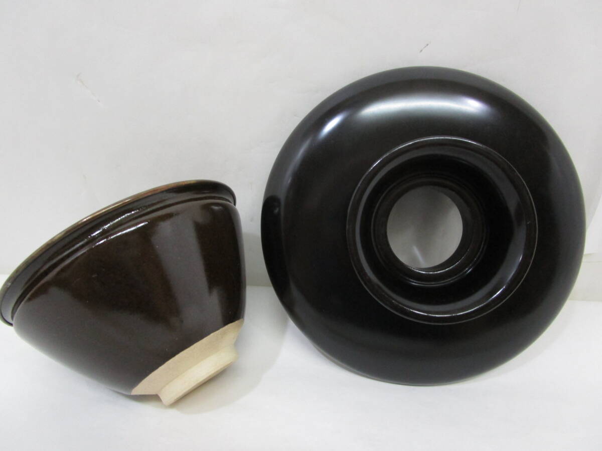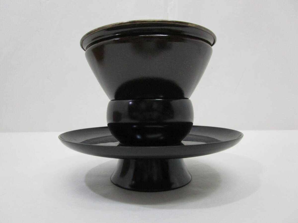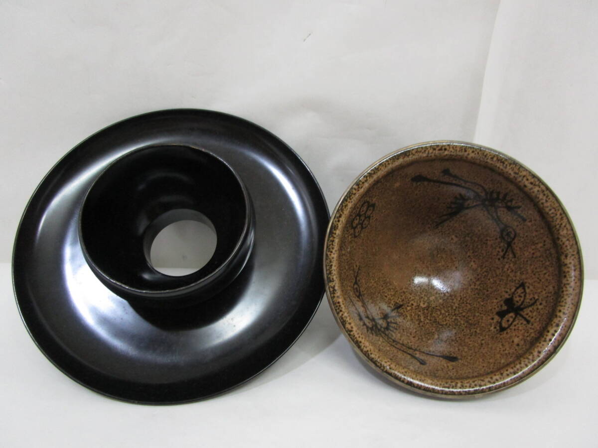 中古茶道具! 平安 万代草山作の 玳玻 天目茶碗 と 樹脂羽の天目台セットです。 使用品ですが未だ十分御使用頂けます。 即決品です。 合わせ箱ですが!どうぞ宜しく。