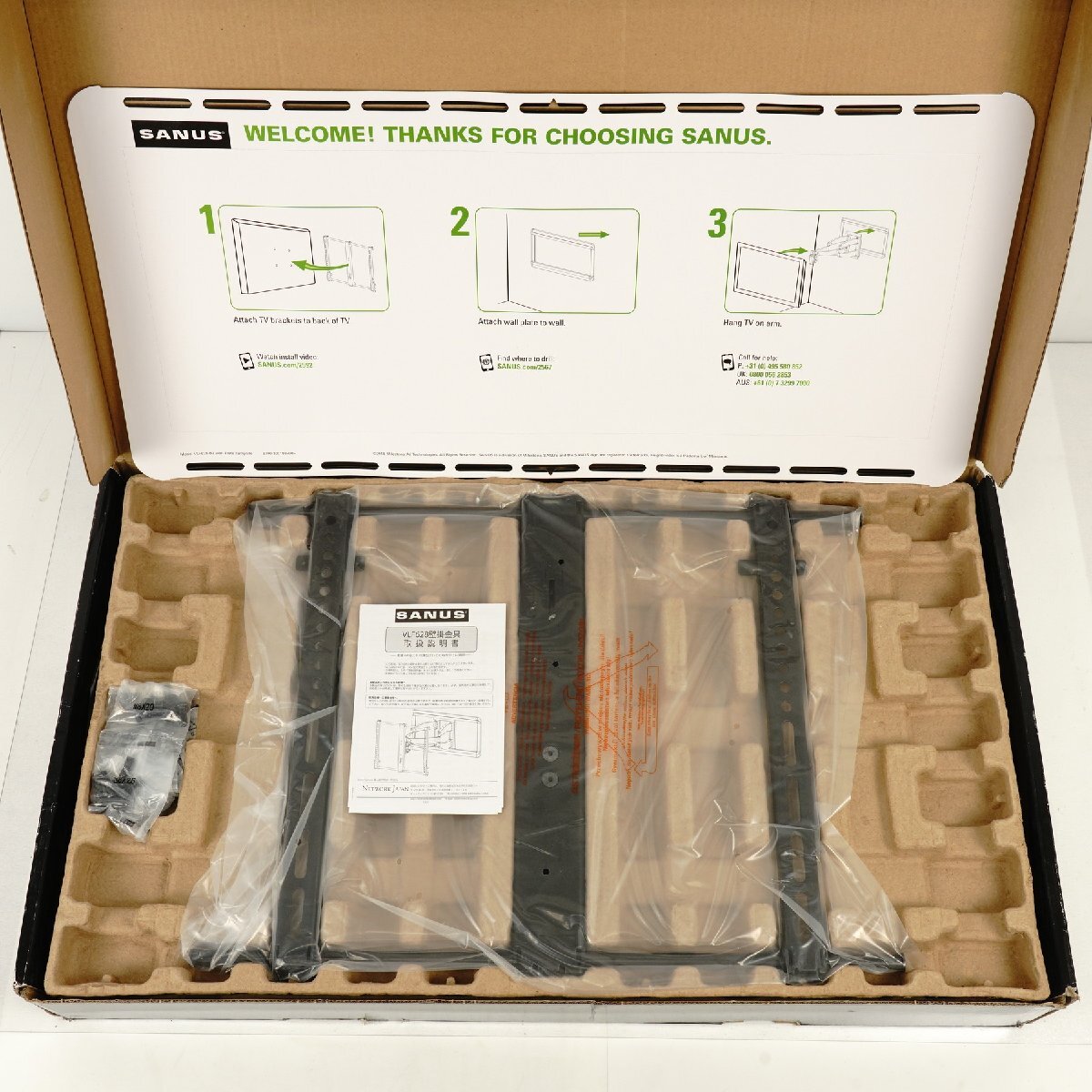 ●収納時で約83mm、引き出し時で約710mm、傾斜左右首振、水平レベル調整動作が可能なフルモーションマウントです。